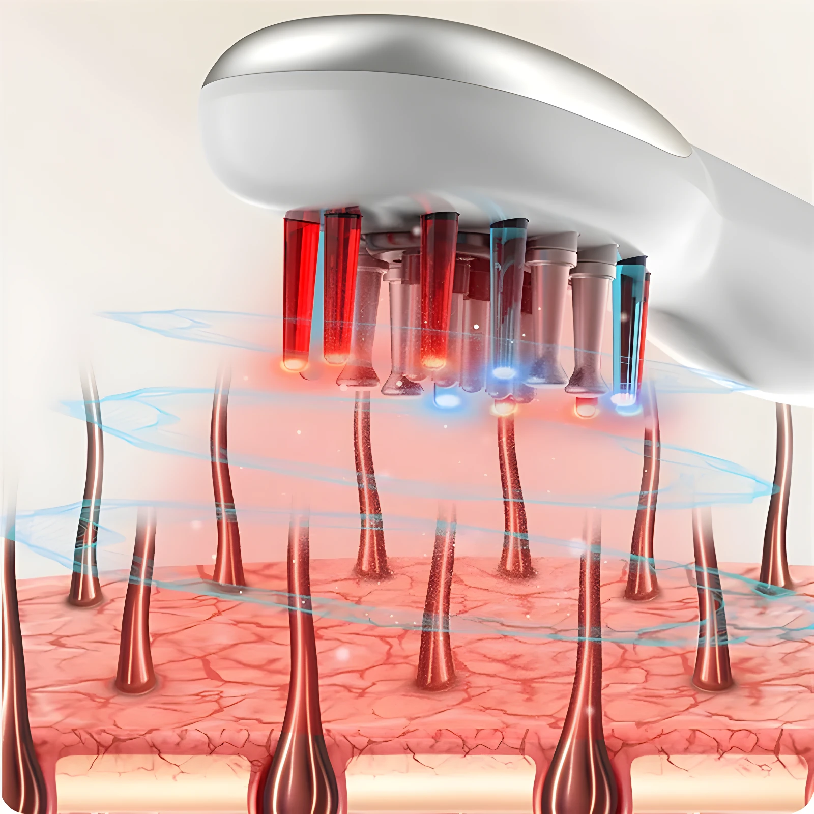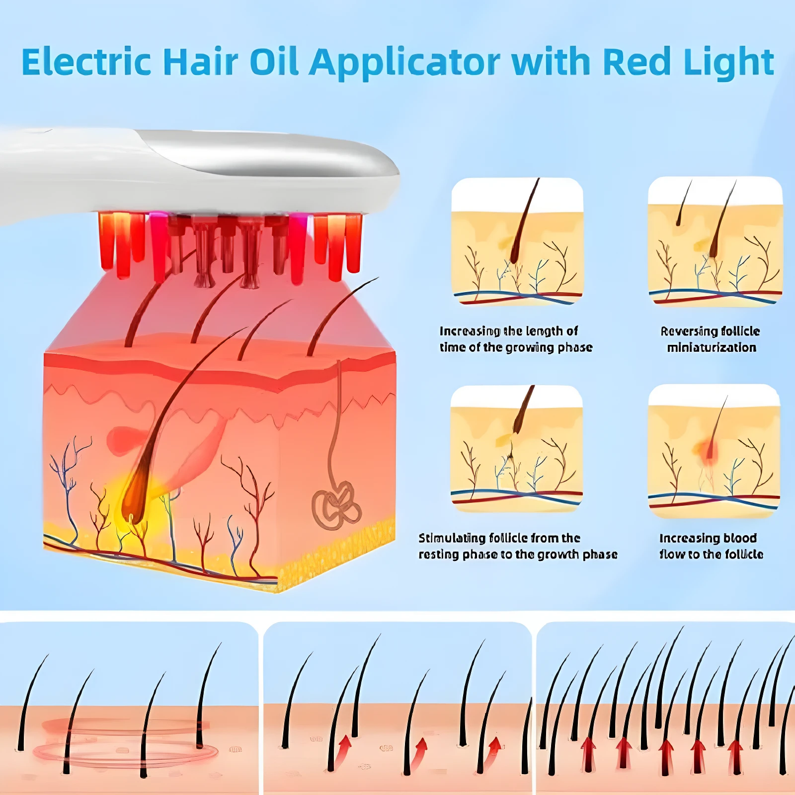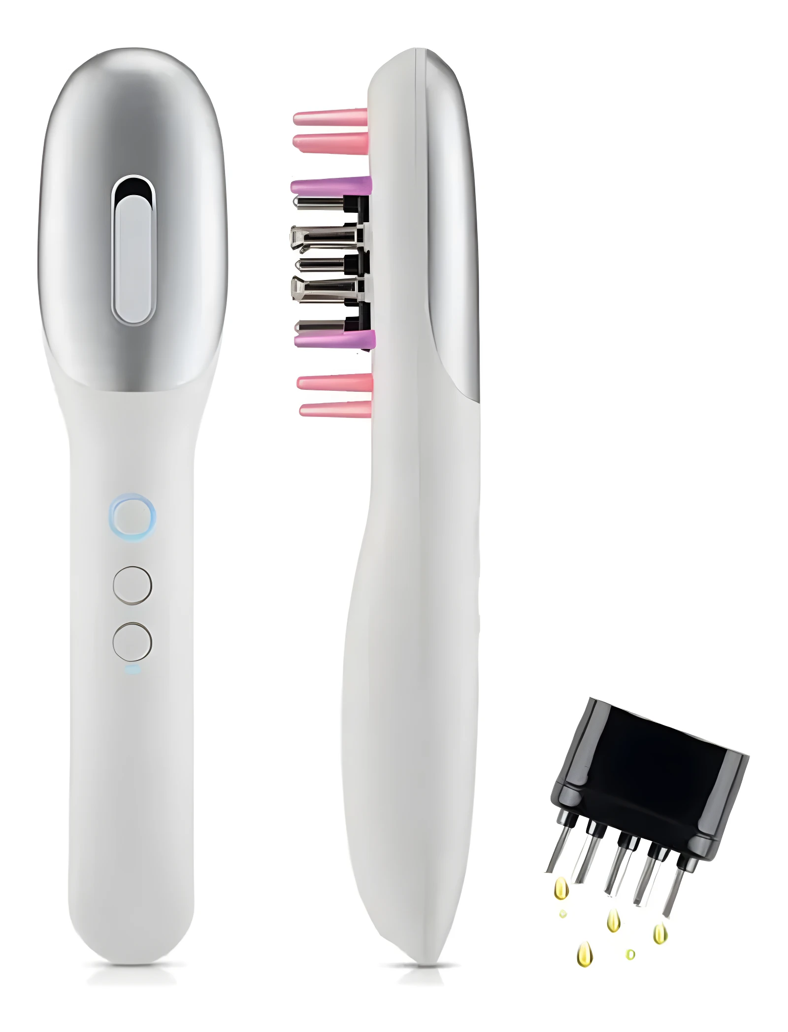 💆♀️ Logre una mejor distribución de sus tratamientos capilares mientras estimula su cuero cabelludo para el crecimiento. Este aplicador eléctrico 3 en 1 facilita el cuidado del cabello al combinar masaje, luz y dosificación de líquidos. 🌿