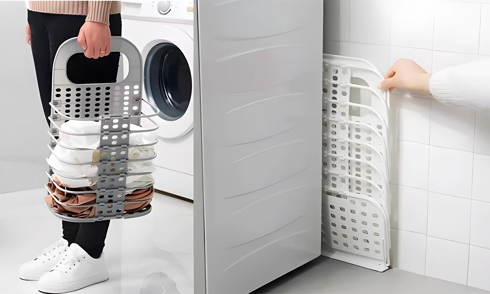 - 4️⃣ Para guardar, comprima la cesta hasta que quede plana, facilitando su almacenamiento.
