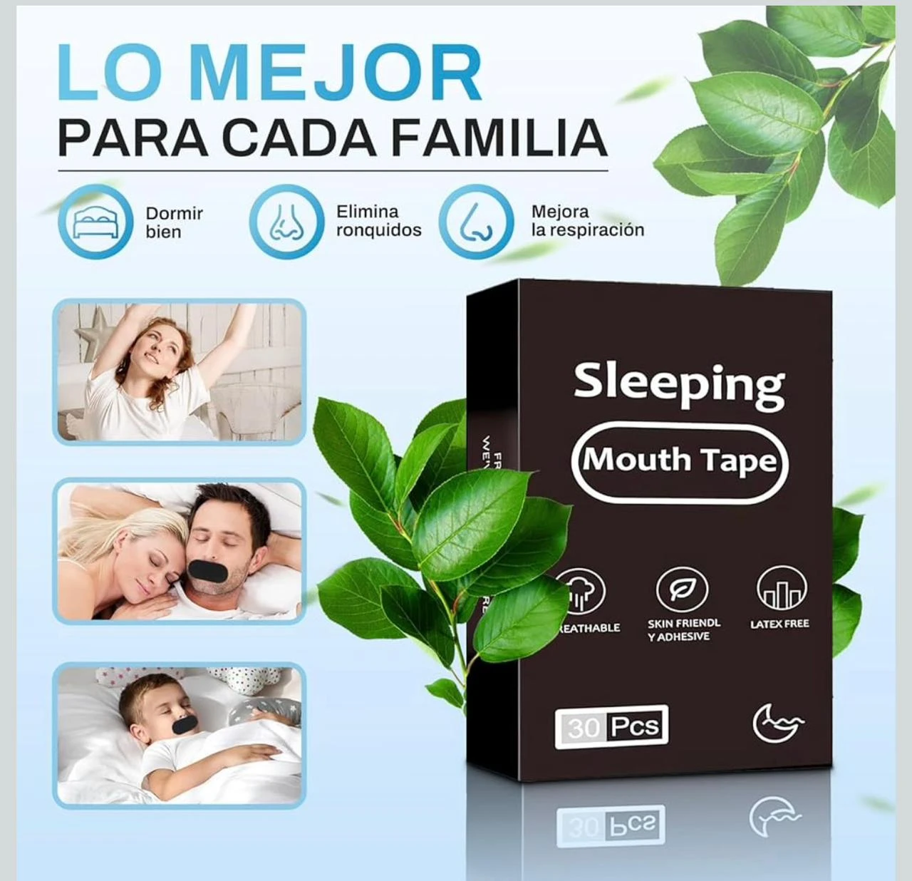 - ☑️ 30 piezas de Cinta Antirronquidos Mouth Tape.