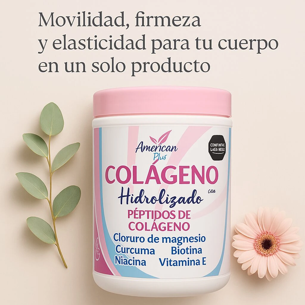 El Set x2 Colágeno Peptidos American Plus es un suplemento nutricional en polvo diseñado para adultos que buscan mejorar la salud de su piel, uñas, cabello y articulaciones. Su fórmula combina péptidos de colágeno con vitaminas y minerales esenciales para promover la regeneración celular y el bienestar general.