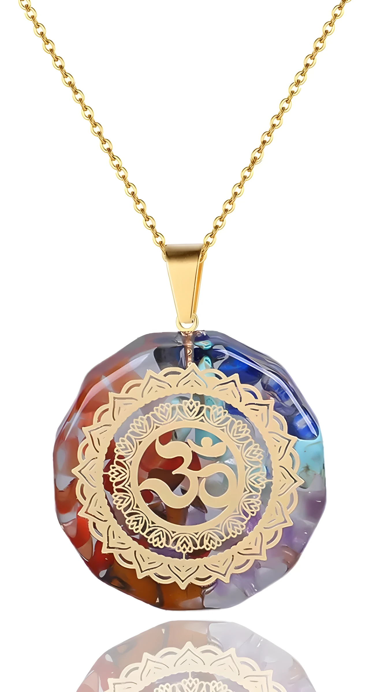 ✨ Equilibra tu energía personal y reduce el estrés diario con este colgante que integra siete cuarzos naturales y el símbolo sagrado del Om para fomentar tu bienestar espiritual y mental. 🕉️