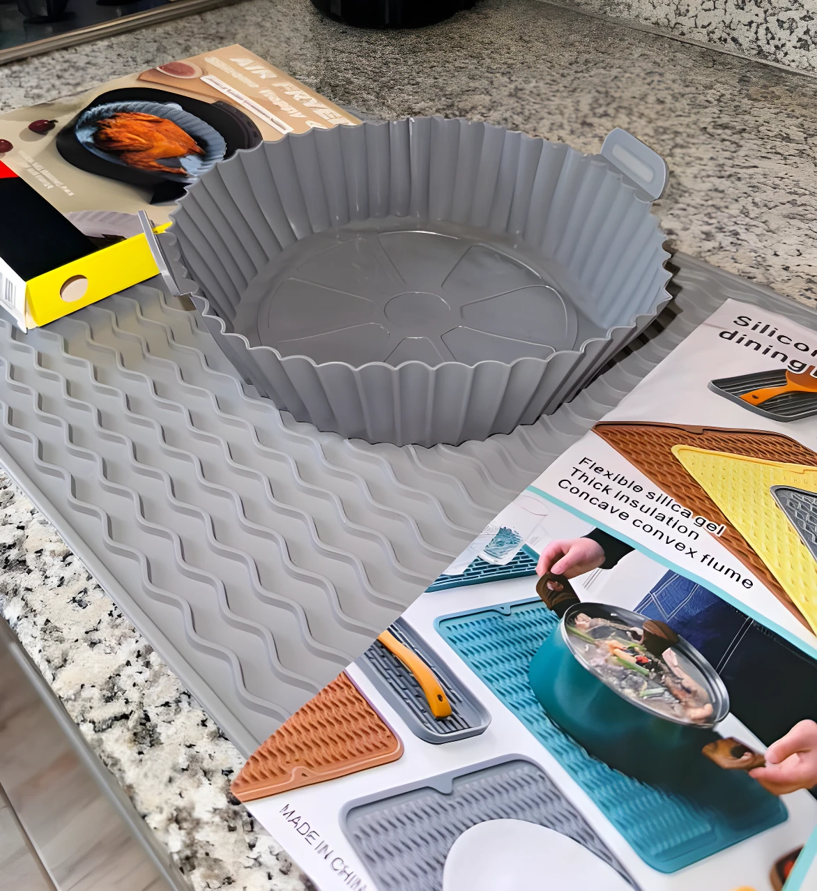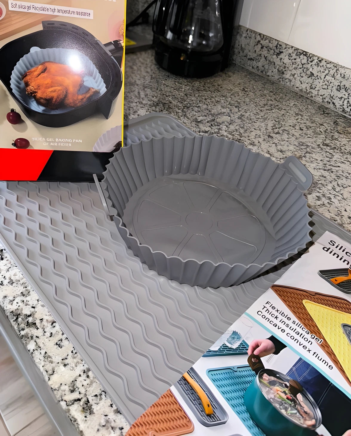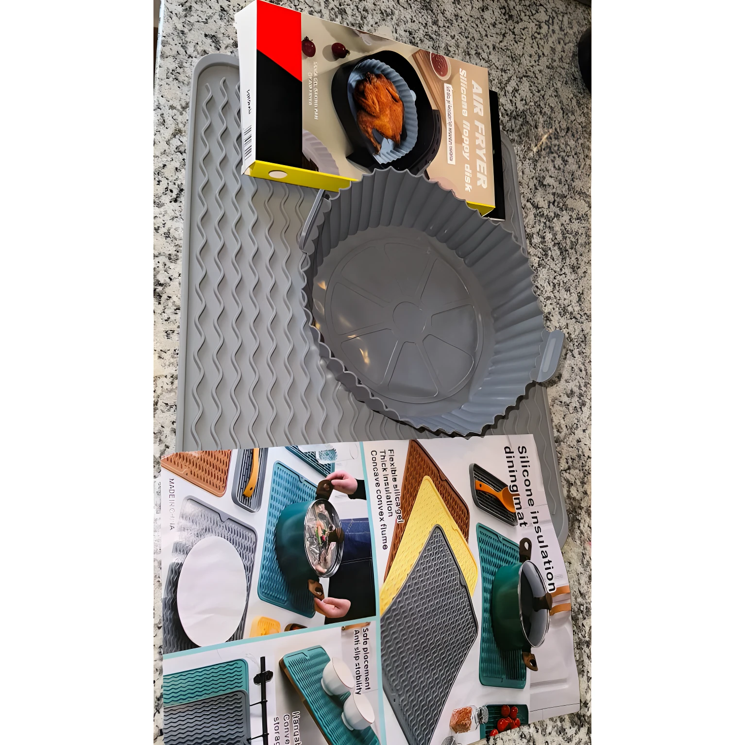 🍳 Mantén tu freidora impecable y protege tus superficies de trabajo con este combo de silicona resistente al calor. Evita residuos pegajosos y facilita la limpieza de tus utensilios de cocina. 🛡️