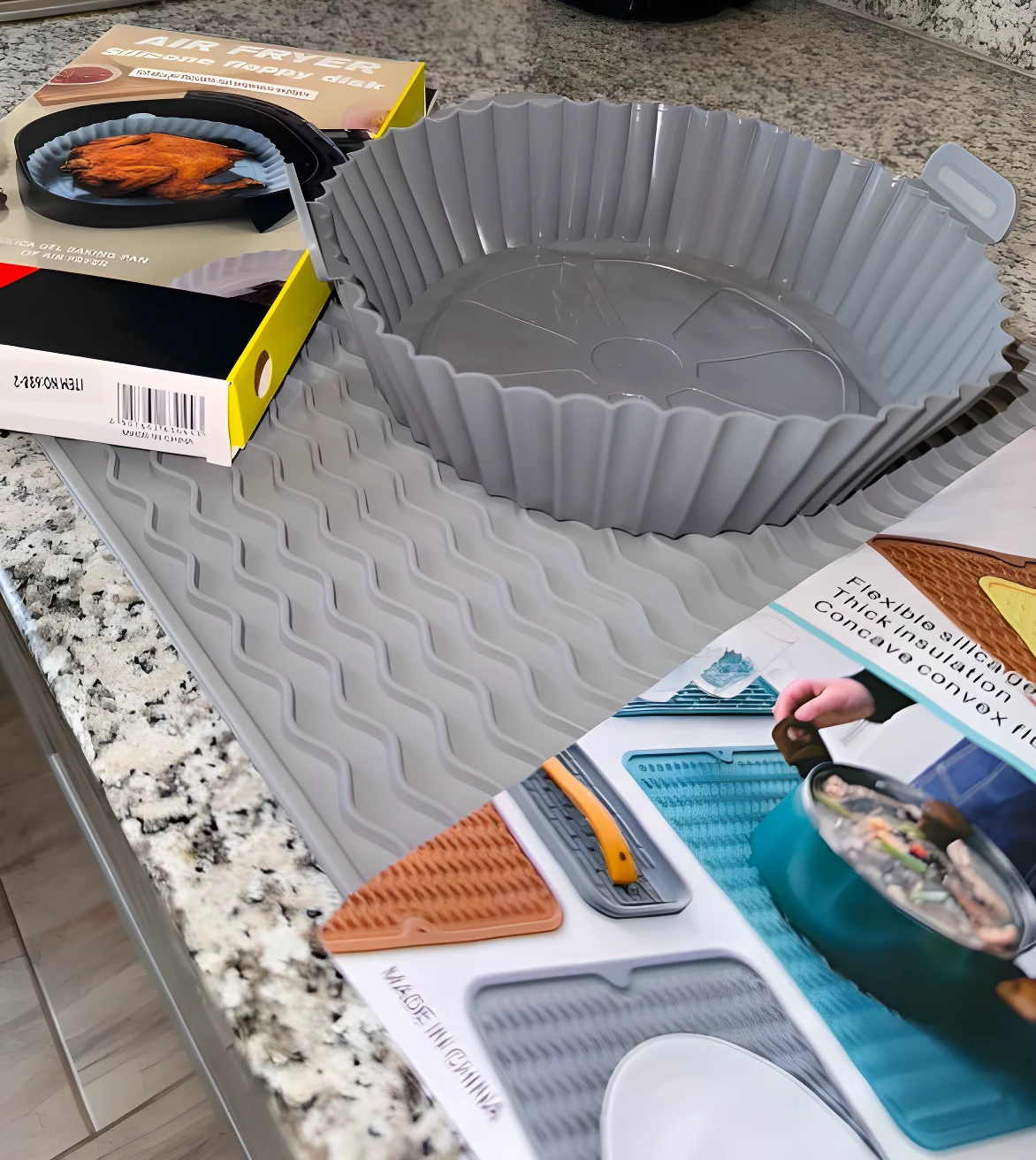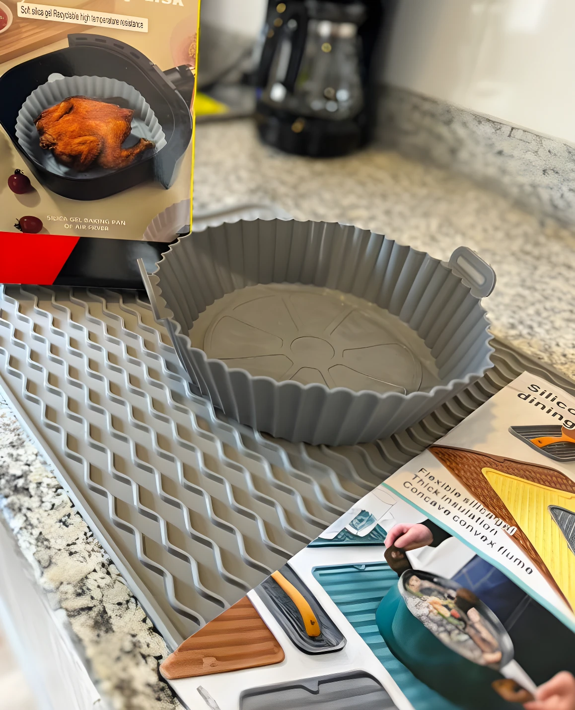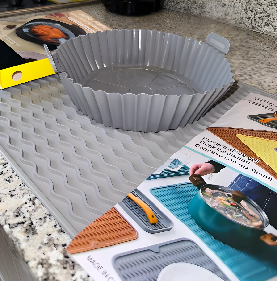 🍳 Mantén tu freidora impecable y protege tus superficies de trabajo con este combo de silicona resistente al calor. Evita residuos pegajosos y facilita la limpieza de tus utensilios de cocina. 🛡️