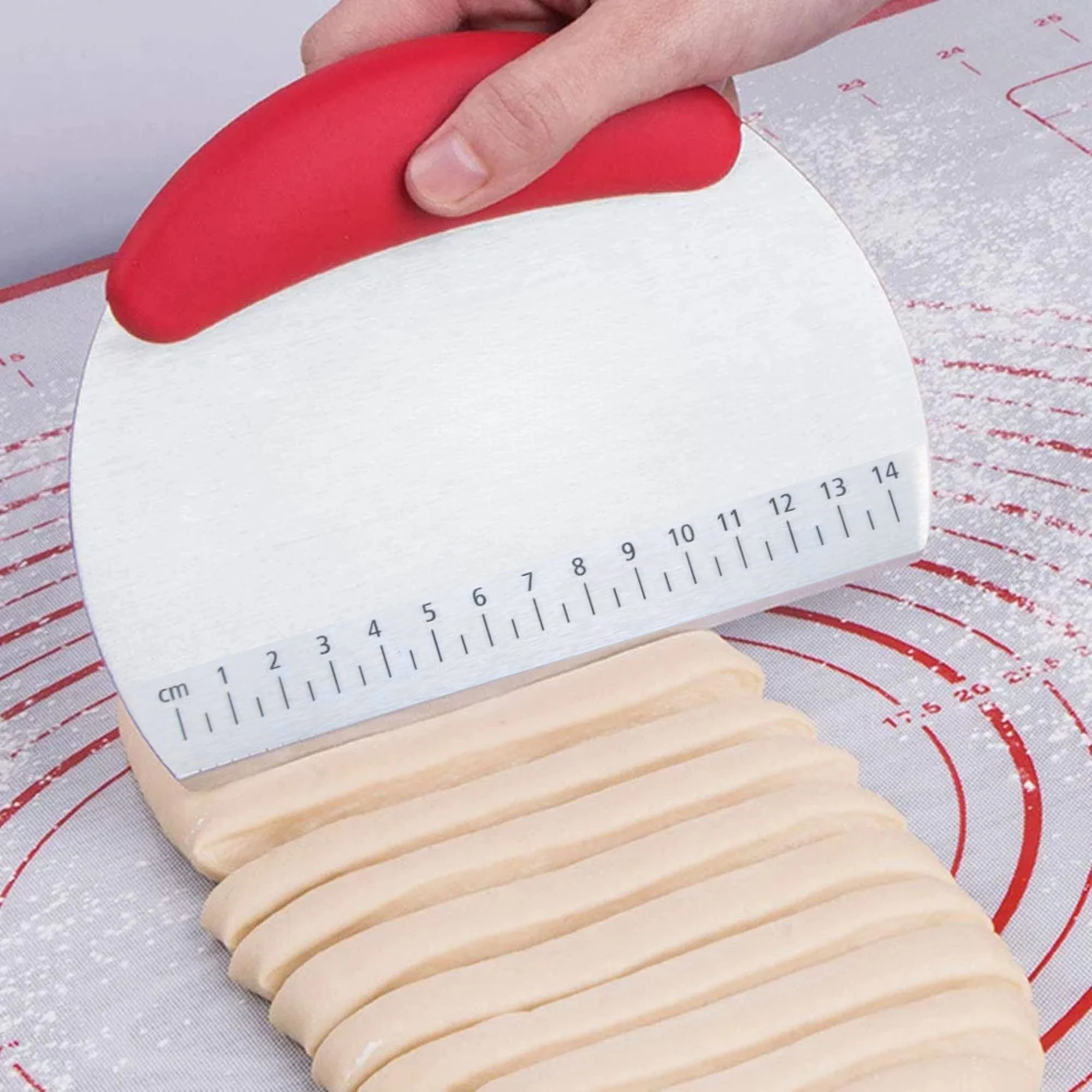 - 🔪 Cortar porciones exactas de masa para pan o pizza gracias a su regla integrada.