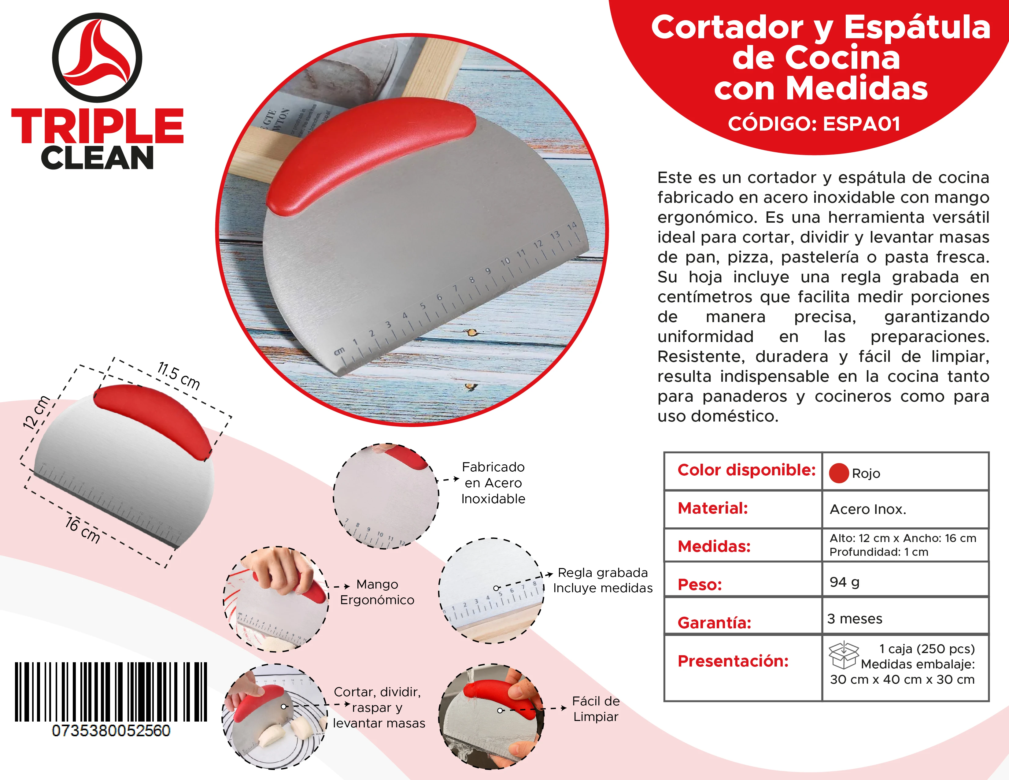 - 🥄 Raspar residuos de masa o harina desde la mesa de trabajo fácilmente.