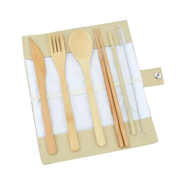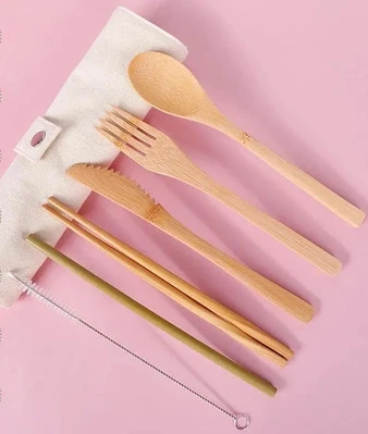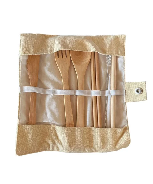 Set x2 Cubiertos Bambú + Estuche de Tela