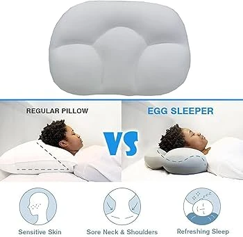 - A diferencia de las almohadas convencionales, su diseño ergonómico con surcos y curvas ofrece un soporte específico y adaptable para el cuello y la cabeza.