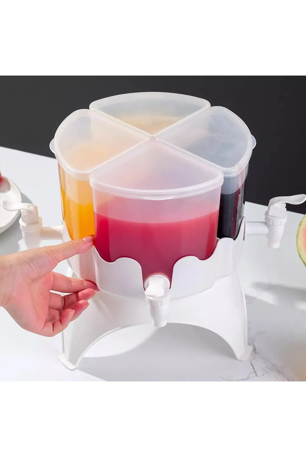 - ☑️ Dispensador de bebidas giratorio de plástico con base.