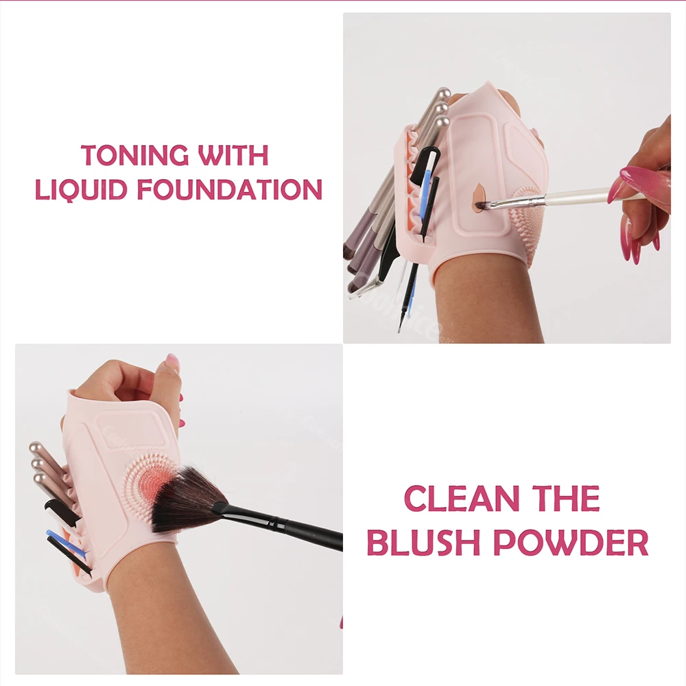 💄 Simplifica la aplicación y limpieza de tu maquillaje con este guante multifuncional. Diseñado para maquilladores profesionales y entusiastas, resuelve el problema de sostener herramientas y limpiar brochas de manera eficiente.