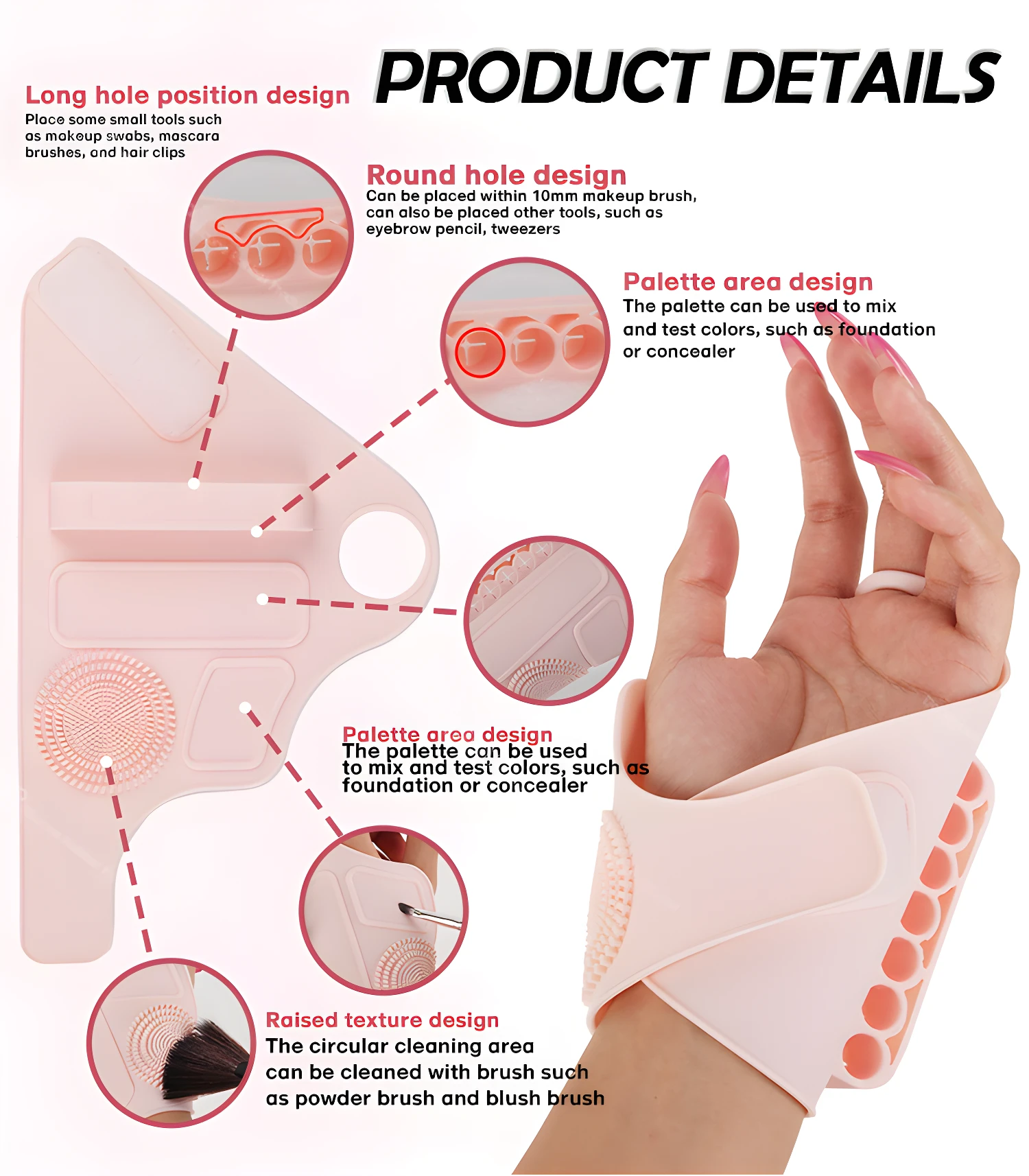 - 🤚 Soporte ergonómico para la mano al maquillar.