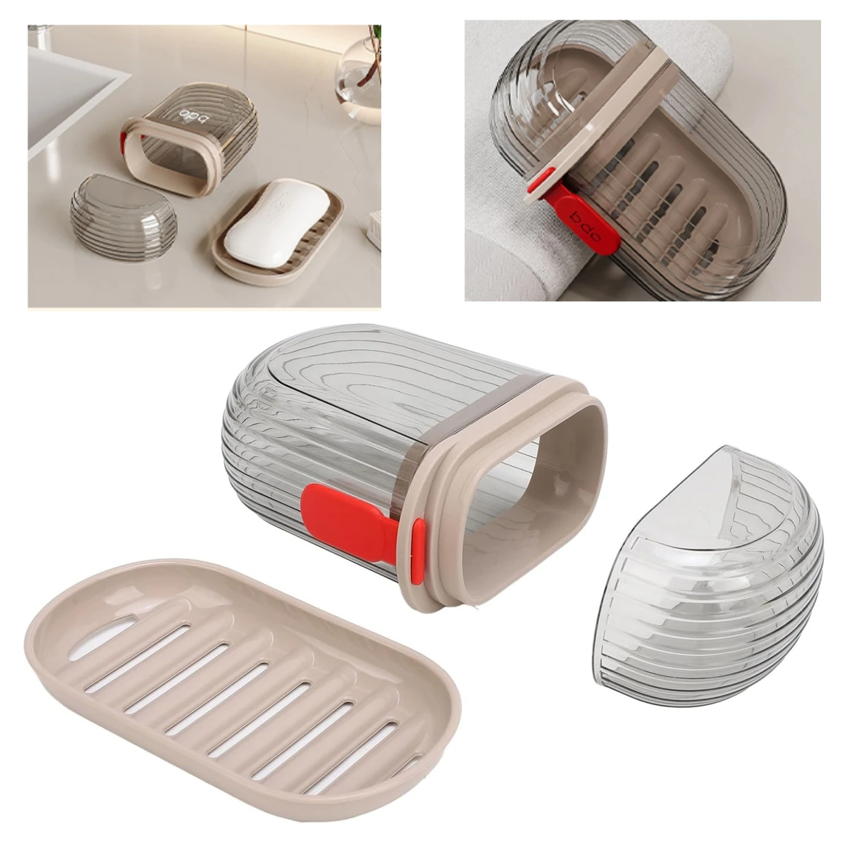 Set de 2 jaboneras portátiles con tapa, diseñadas para mantener el jabón limpio y seco durante el transporte. Ideales para viajes, gimnasio o uso diario, evitan derrames gracias a su cierre hermético y sistema de drenaje interno que previene el ablandamiento del jabón.