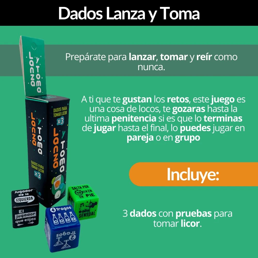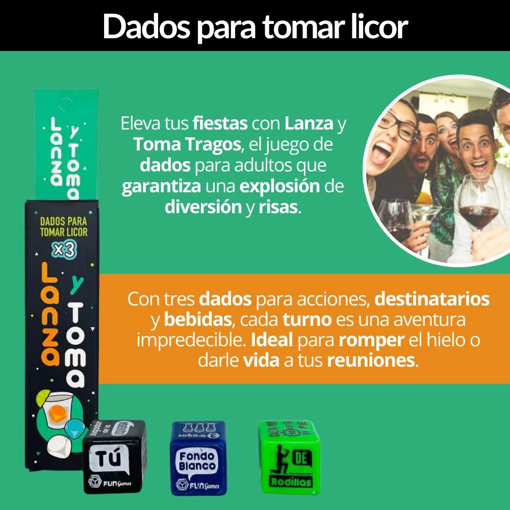 - ☑️ 3 Dados con pruebas para tomar licor.