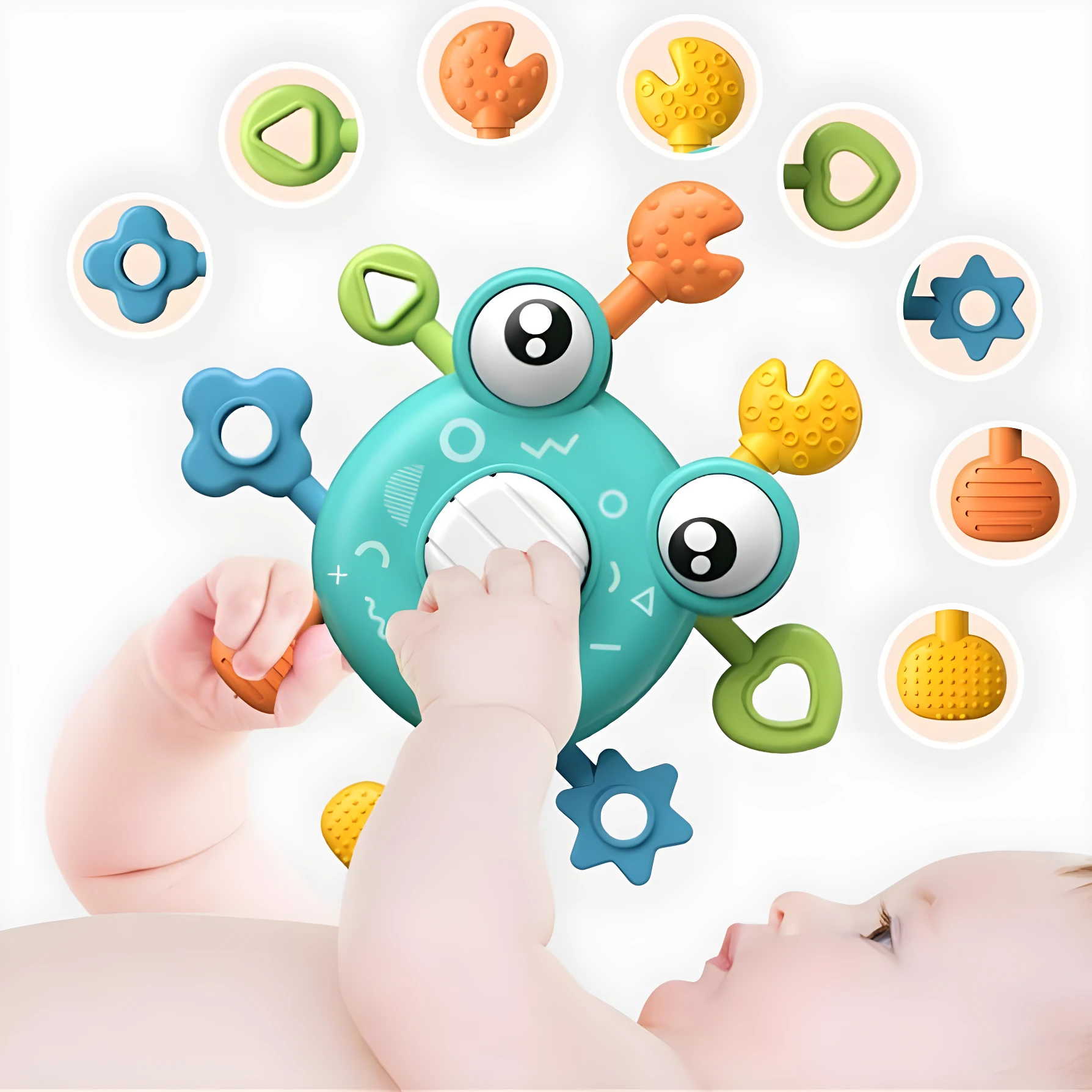 🦀 Estimula los sentidos de tu bebé con texturas y sonidos divertidos. Ayuda a calmar las encías y promueve el desarrollo táctil y auditivo.