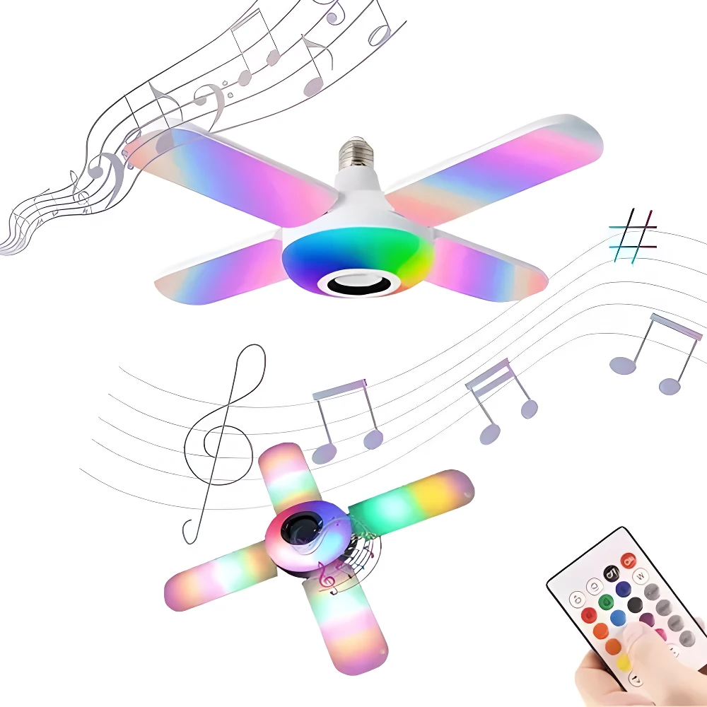 - ☑️ Lámpara bombillo parlante con aspas ajustables.