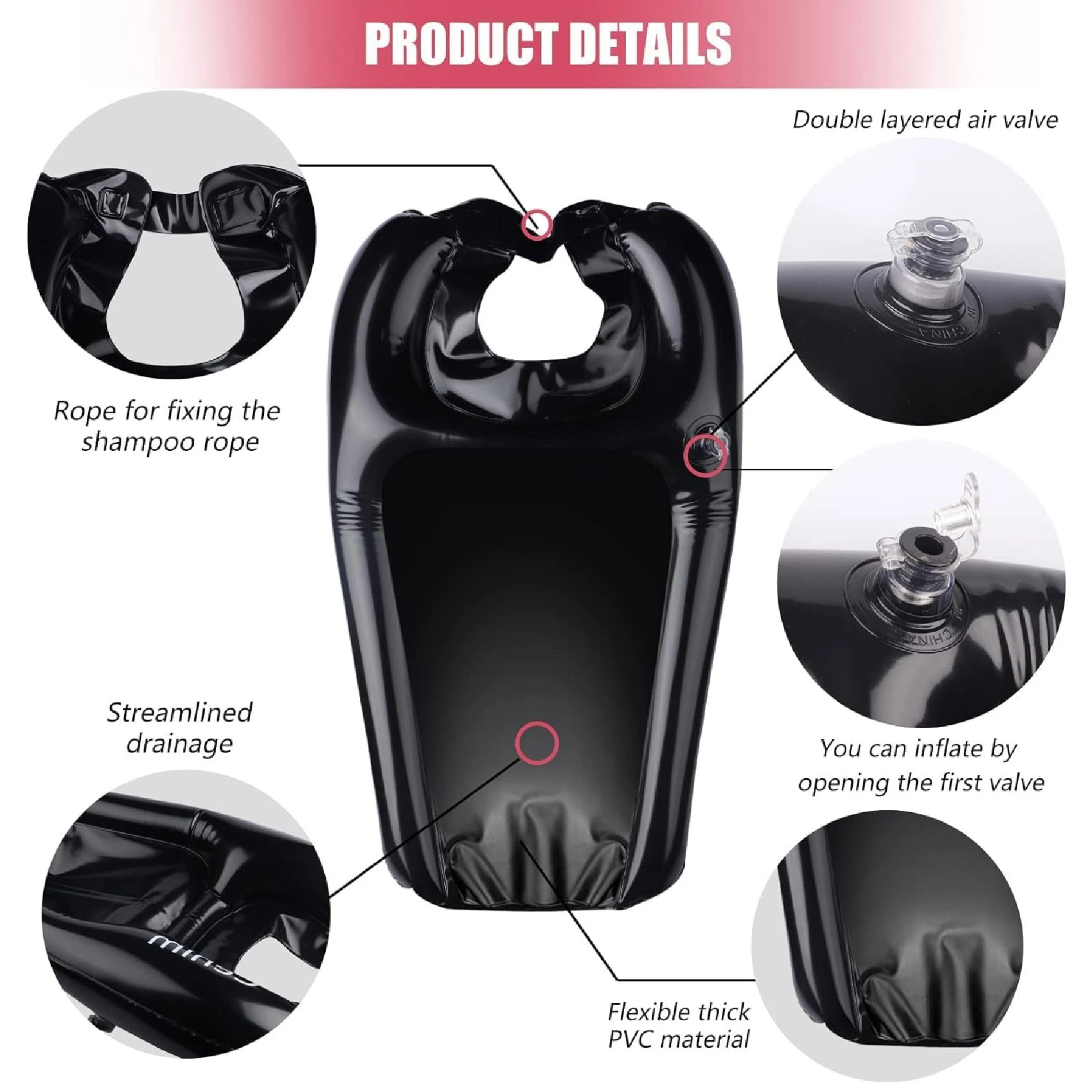 - 1️⃣ Despliegue el lavacabezas e infle las cámaras mediante la válvula.
