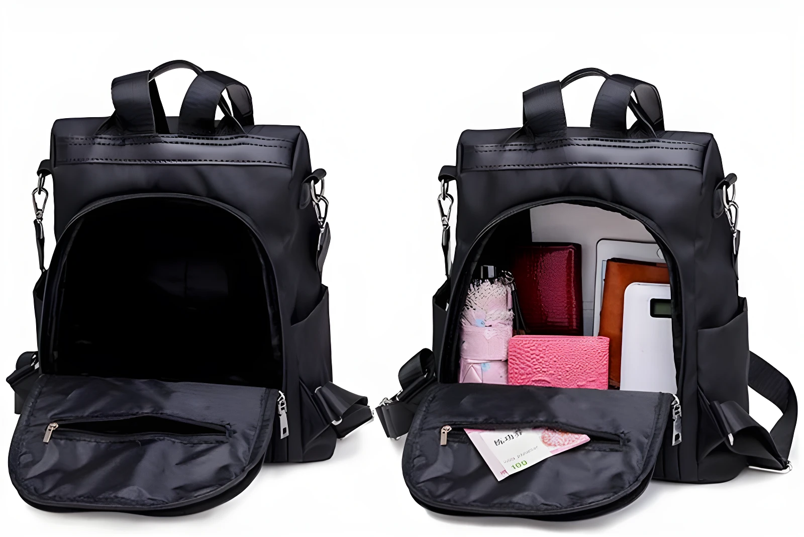 - 2️⃣ Guarde objetos pequeños y de valor en el bolsillo secreto trasero para mayor seguridad.