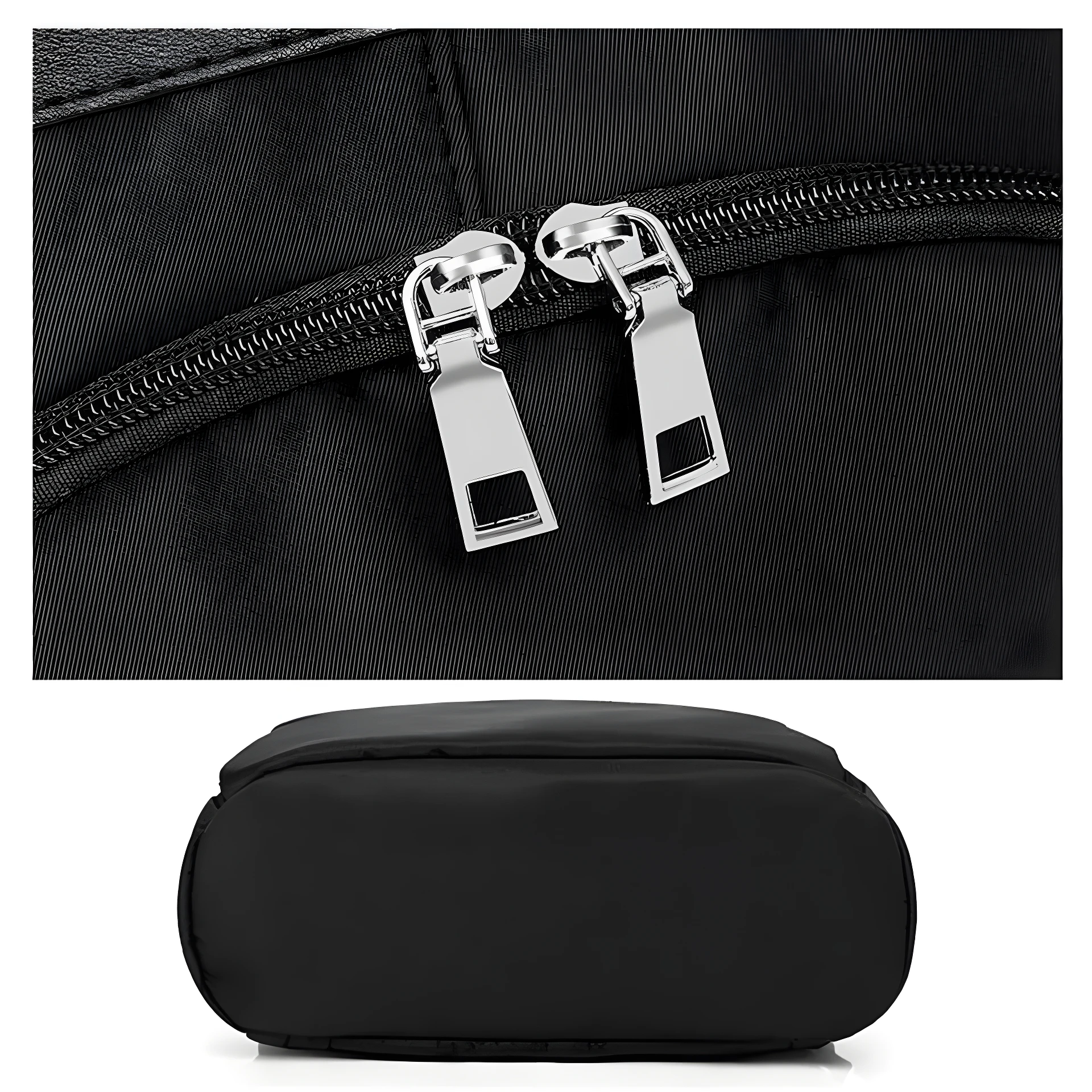 - La cremallera del bolsillo principal está completamente oculta en la parte posterior de la mochila, contra la espalda.