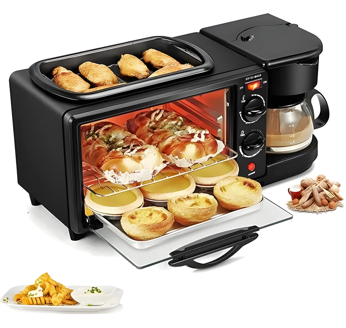- ✅ Funcionalidad 3 en 1: Horno tostador, cafetera y plancha superior.