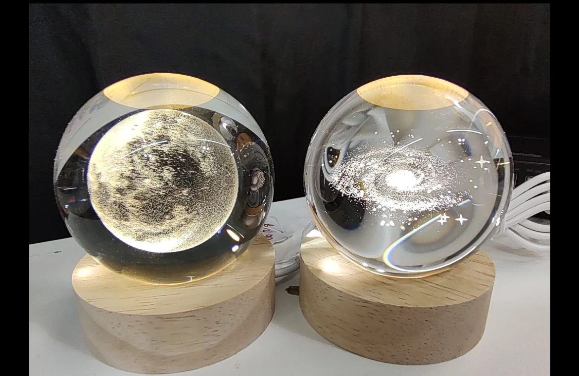 - La iluminación es fija según el modelo, diseñada para ofrecer una luz cálida que resalte los detalles internos de la esfera.