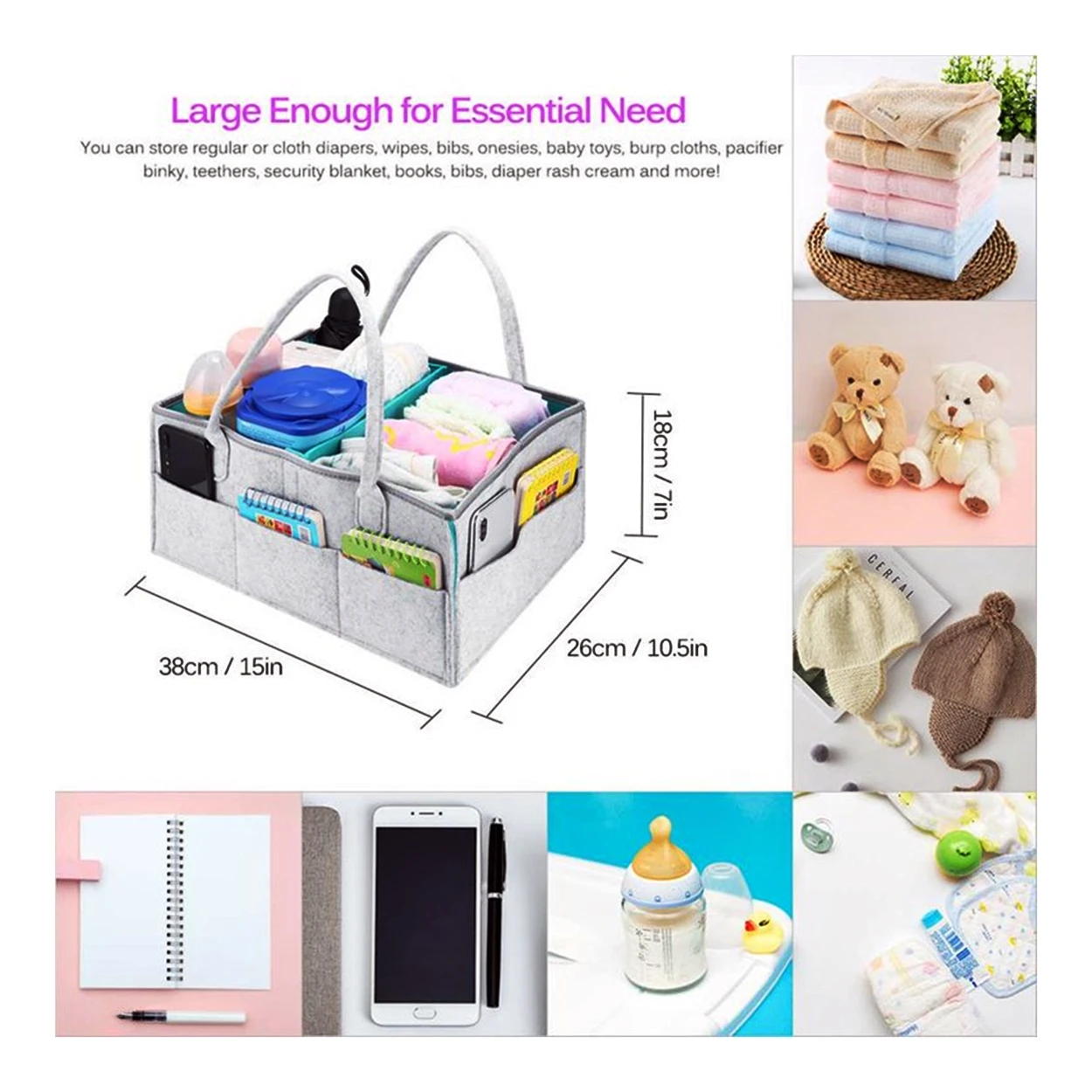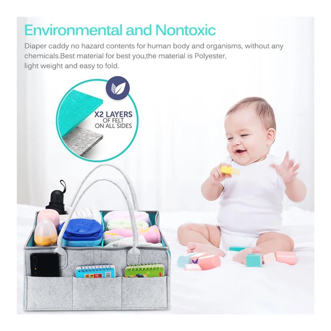 - ☑️ Organizador Cesta De Pañales Portátil Para Bebés.