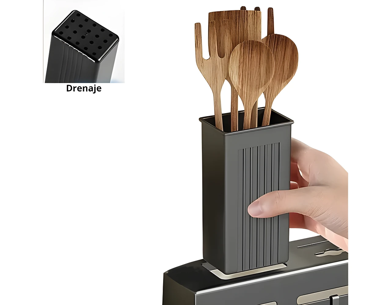 - ⏱️ Agiliza las tareas culinarias al tener todas las herramientas a la mano.