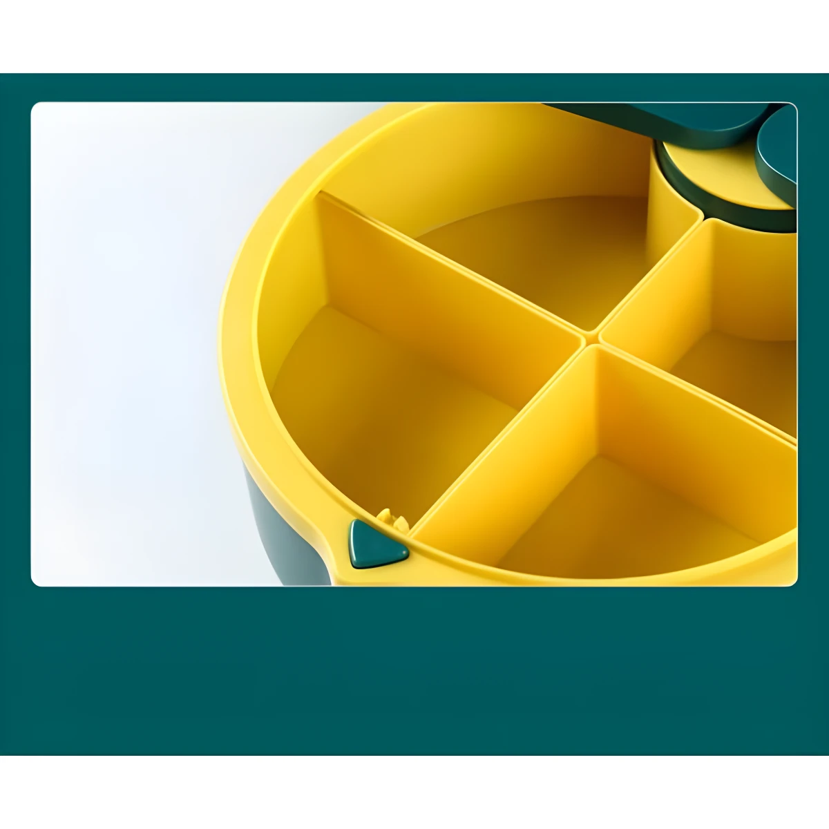 - 1️⃣ Gire la base del organizador para acceder a los compartimentos.