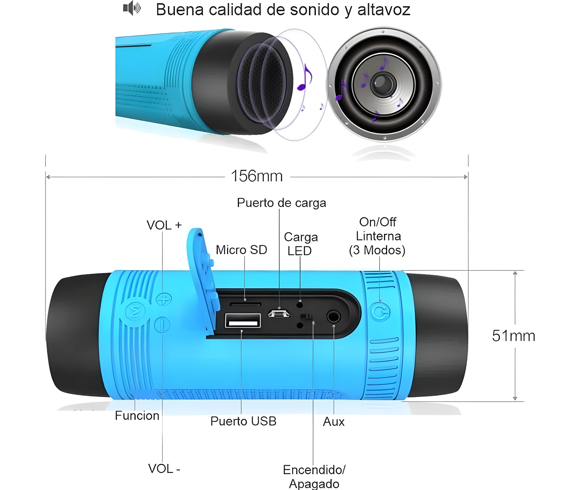 - 🚶♀️ Útil para caminatas o paseos, ofreciendo seguridad con su linterna y tu banda sonora.