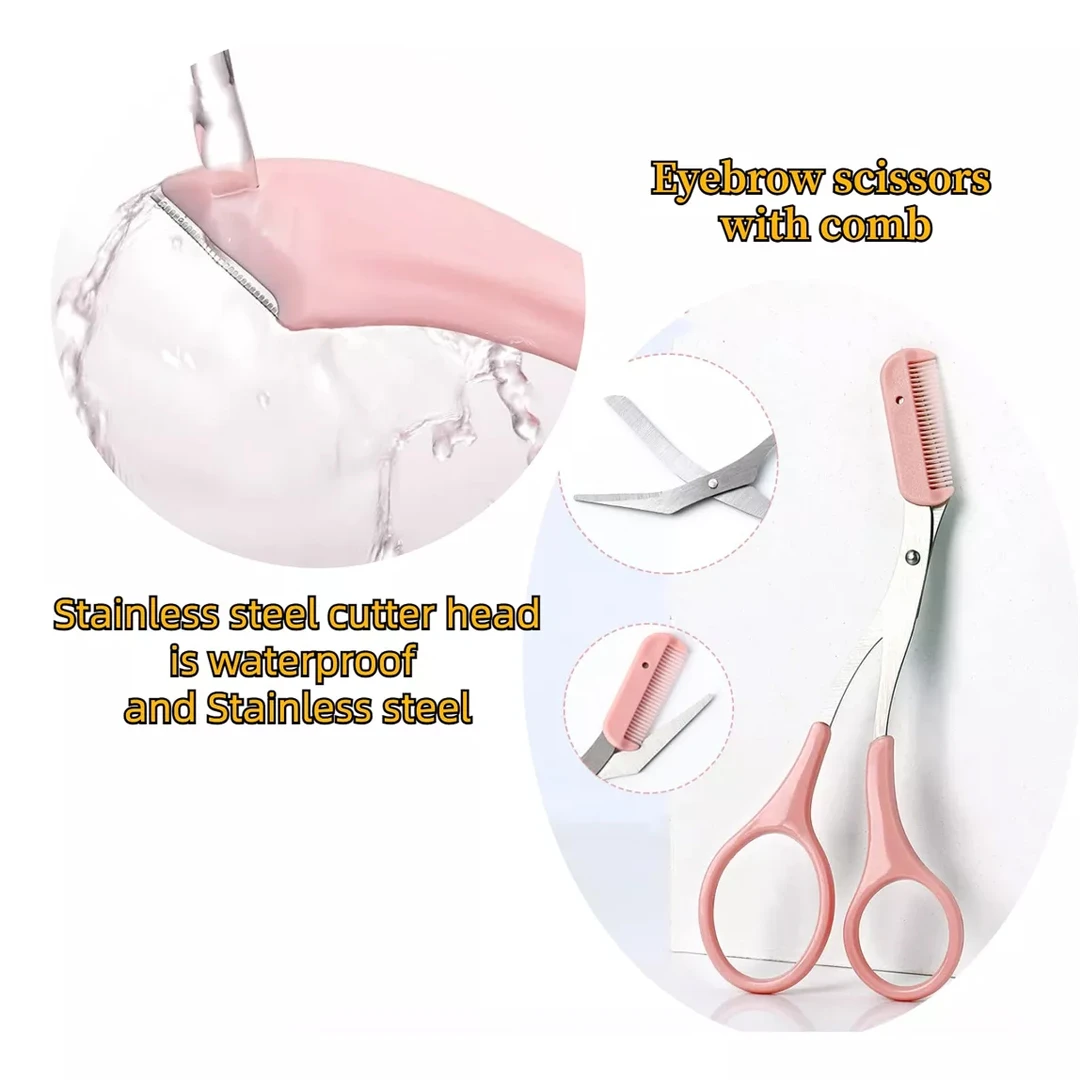 Este kit incluye tijeras de acero inoxidable con peineta integrada y perfiladores de cejas, diseñados para hombres y mujeres que buscan definir y recortar el vello de sus cejas. Es ideal para el uso diario y para quienes buscan un acabado natural y pulido en su rutina de belleza.