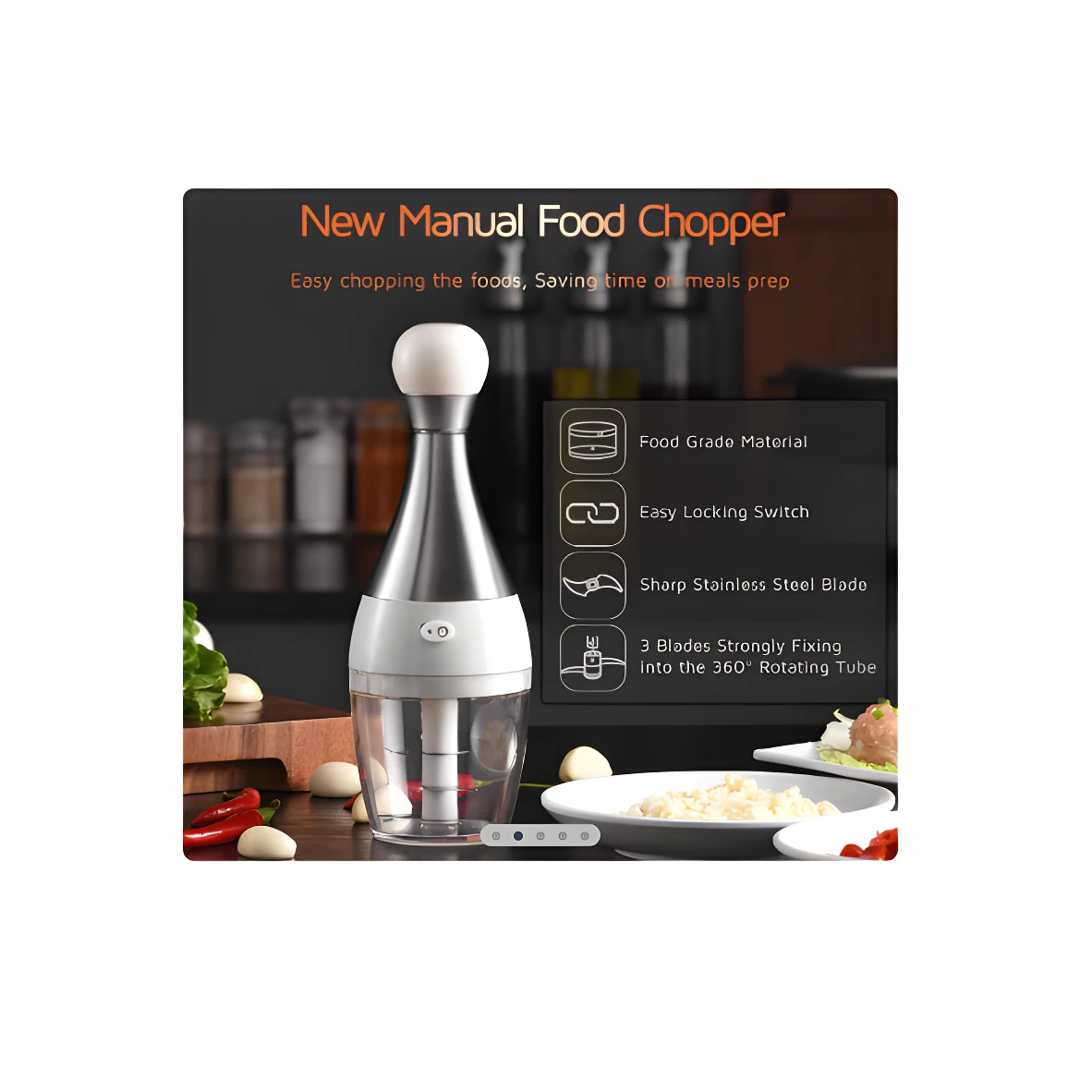 - ☑️ 1 Picador de alimentos Bolo con mecanismo de presión.