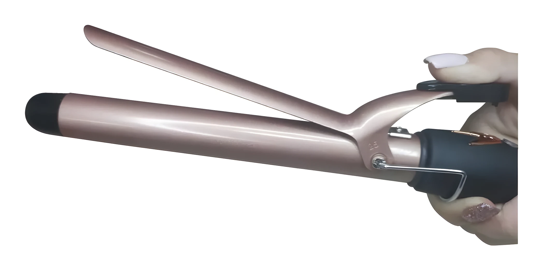 - 2️⃣ Separa una sección del cabello, asegurándola entre la pinza y el barril, manteniendo las puntas libres.