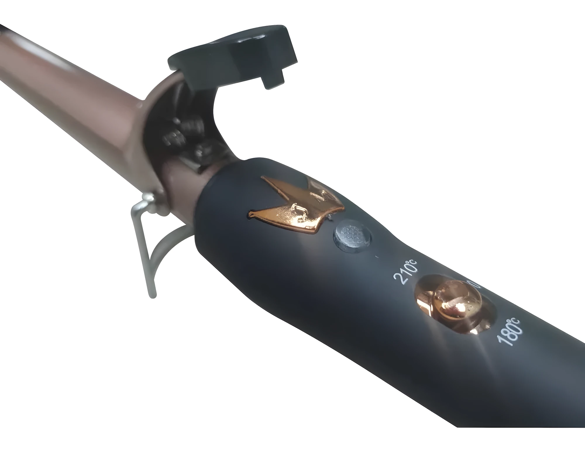 - 1️⃣ Conecta la pinza rizadora a la corriente eléctrica y espera que alcance la temperatura deseada (180°C o 210°C).