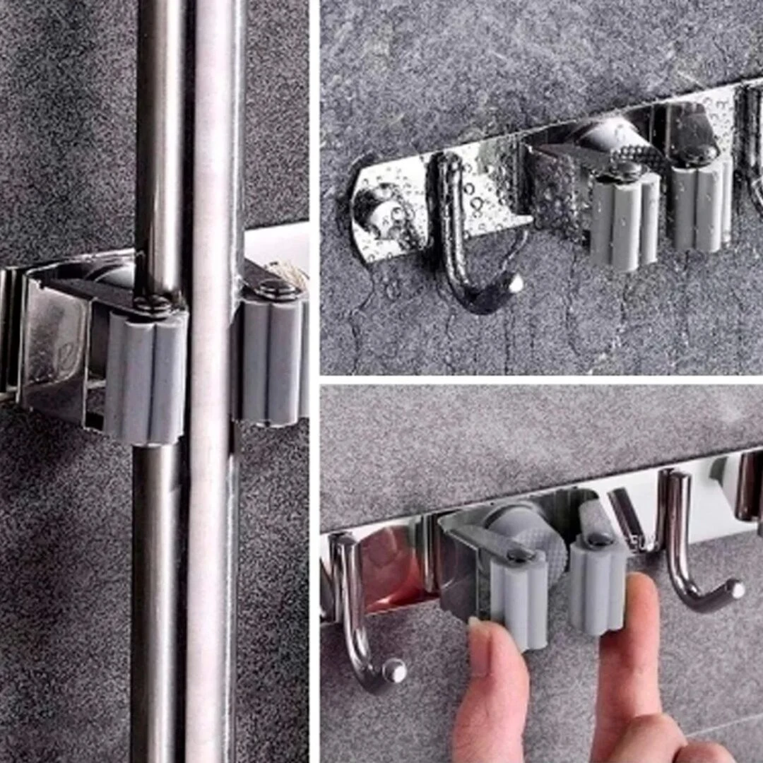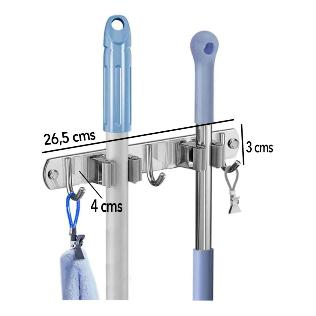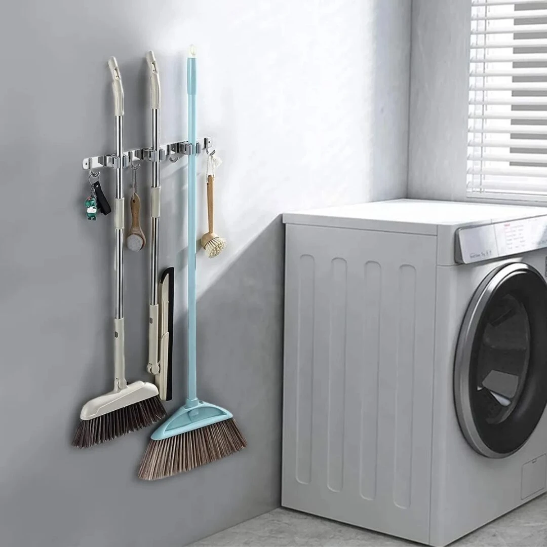 🧹 Despídase del desorden y mantenga sus utensilios de limpieza y herramientas accesibles con este soporte organizador de acero inoxidable, ideal para ordenar lavaderos y cocinas.🛠️