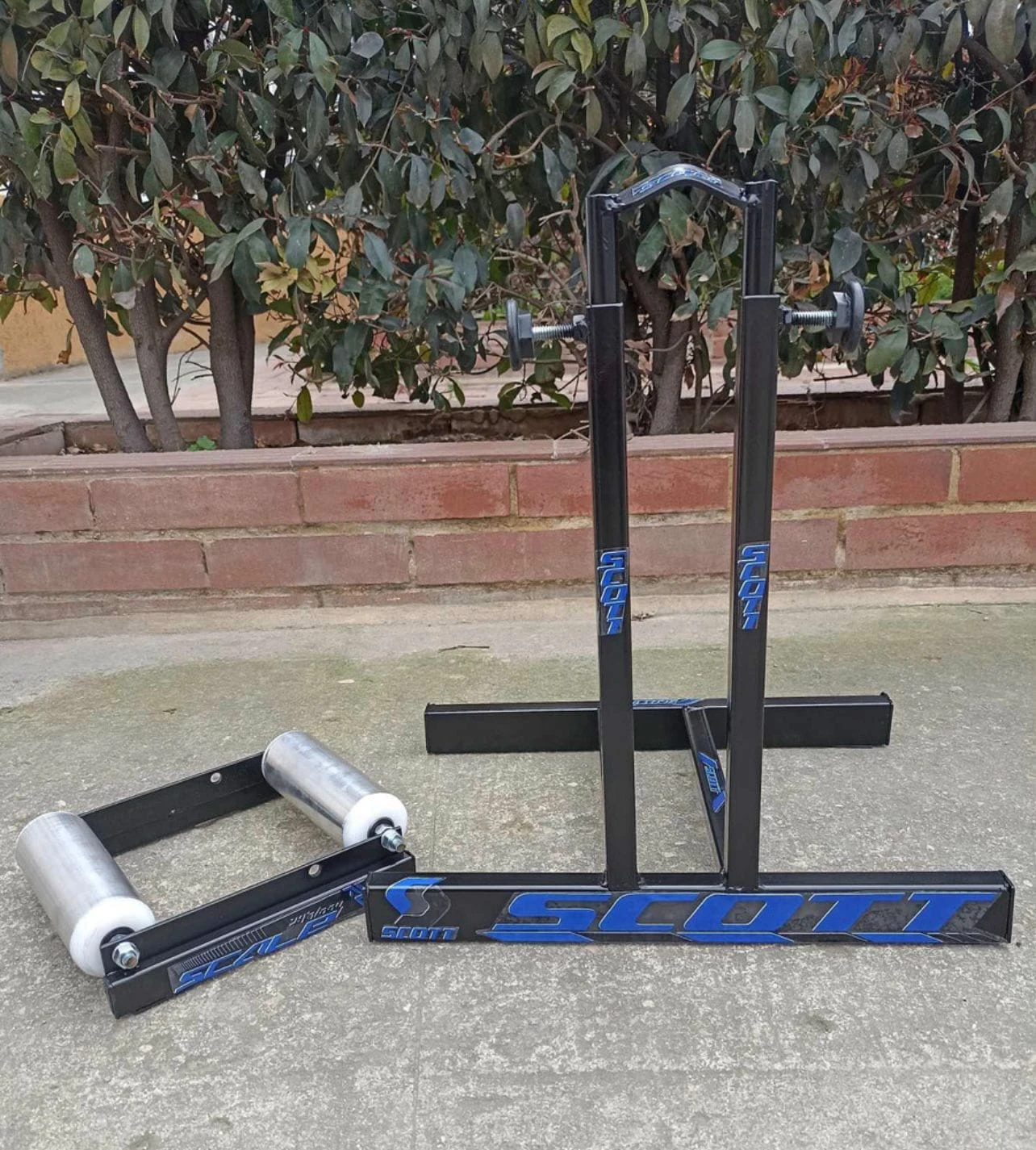 - La instalación es sencilla, se coloca la rueda trasera en los rodillos y se asegura la horquilla delantera en su base.