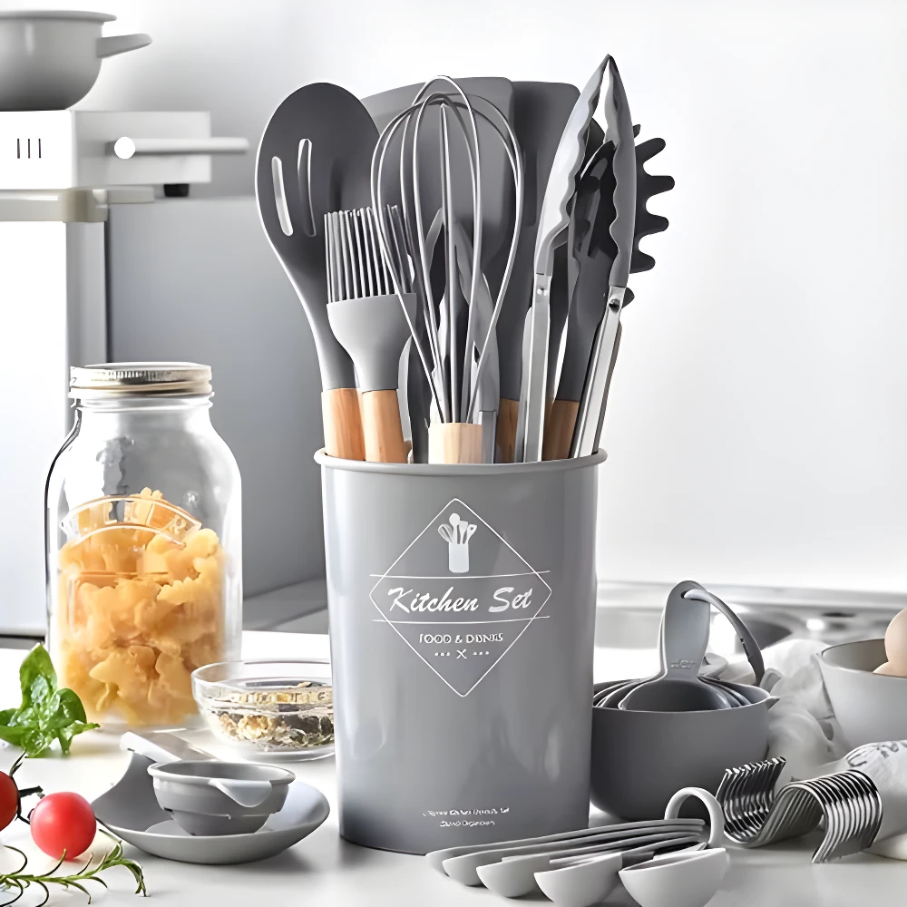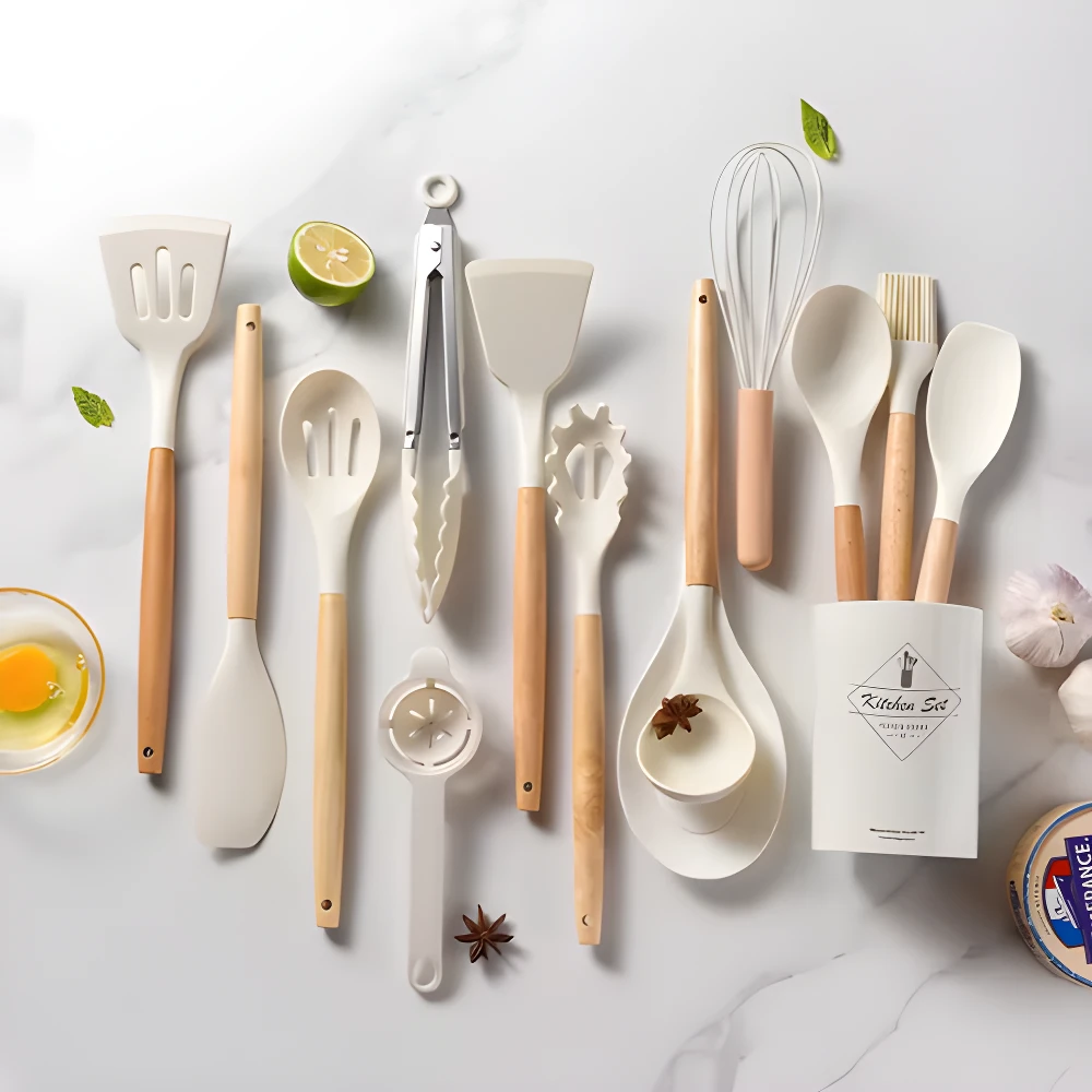 - ☑️ 12 piezas de cocina (espátulas, cucharas y accesorios).