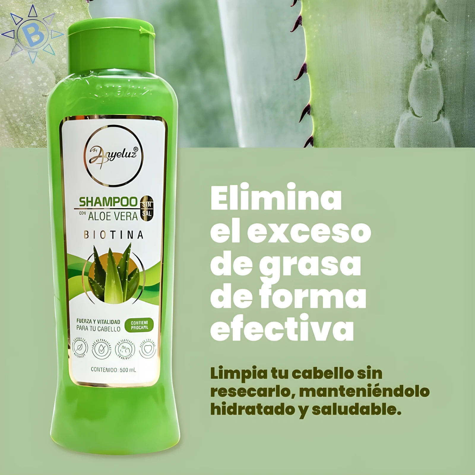 - 🍃 Calma el cuero cabelludo gracias a las propiedades del aloe vera.