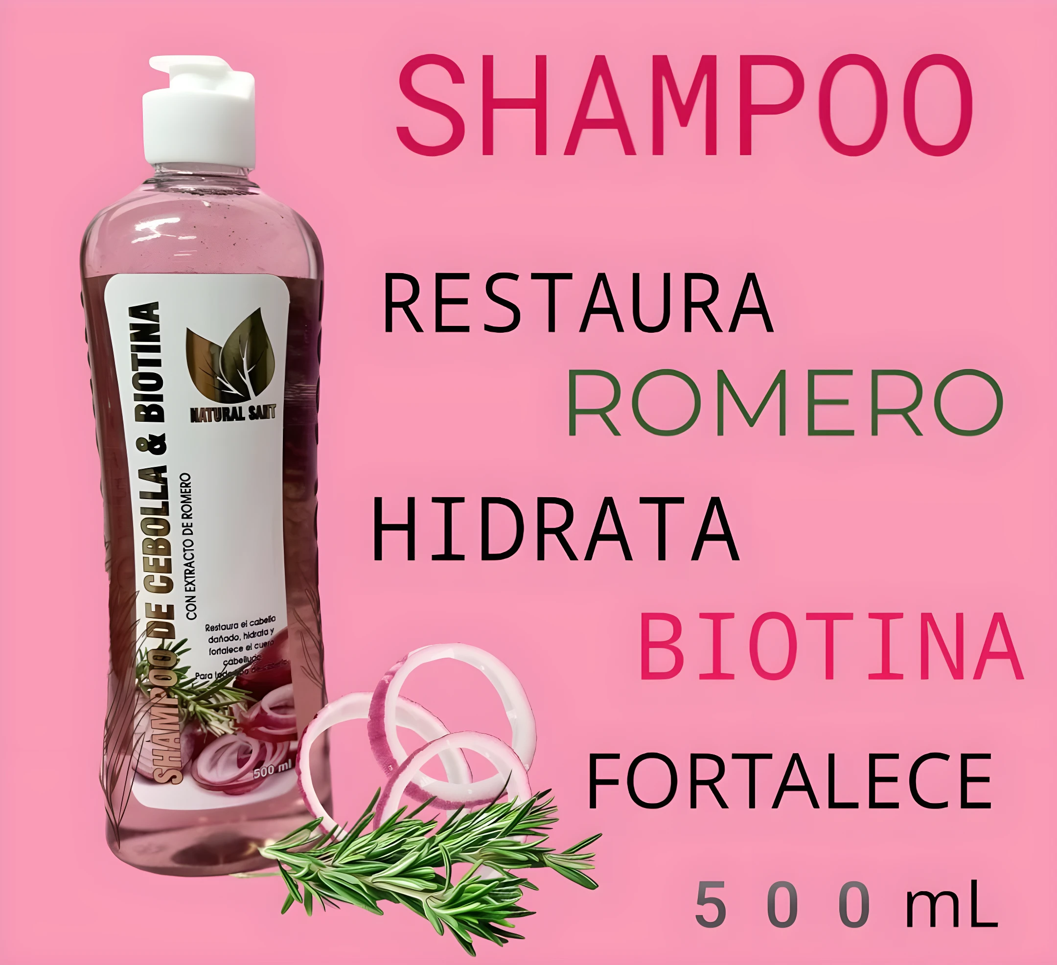 - ☑️ Shampoo de Cebolla Roja y Biotina 500 mL.
