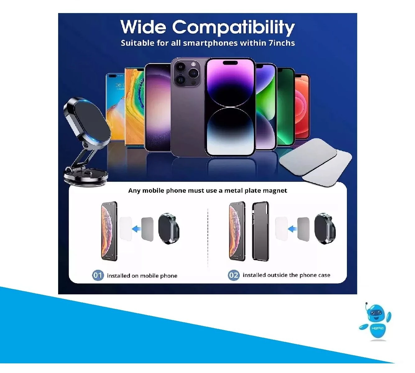 - Los imanes N52 son potentes pero seguros para dispositivos modernos. La placa se coloca en el exterior del teléfono.