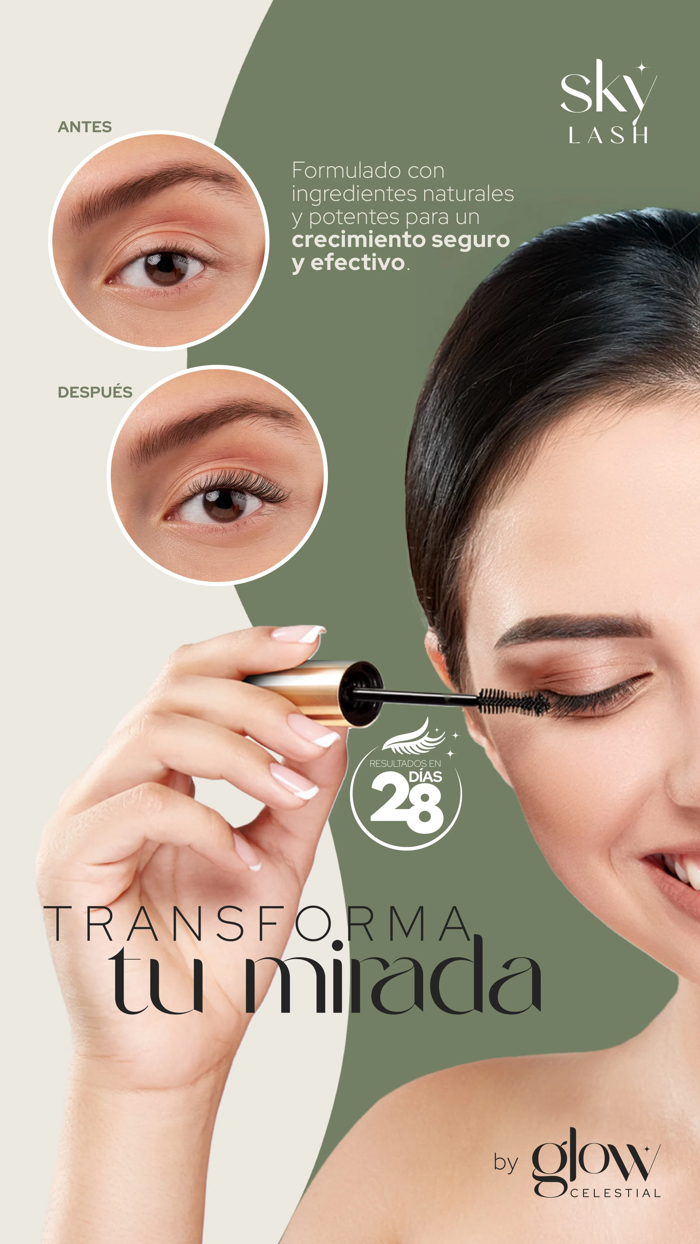 Sky Lash es un tratamiento diseñado para estimular el crecimiento, fortalecer y alargar pestañas y cejas. Ideal para quienes buscan realzar la expresividad de su mirada de forma natural, este suero se aplica diariamente, integrándose fácilmente en la rutina de belleza.