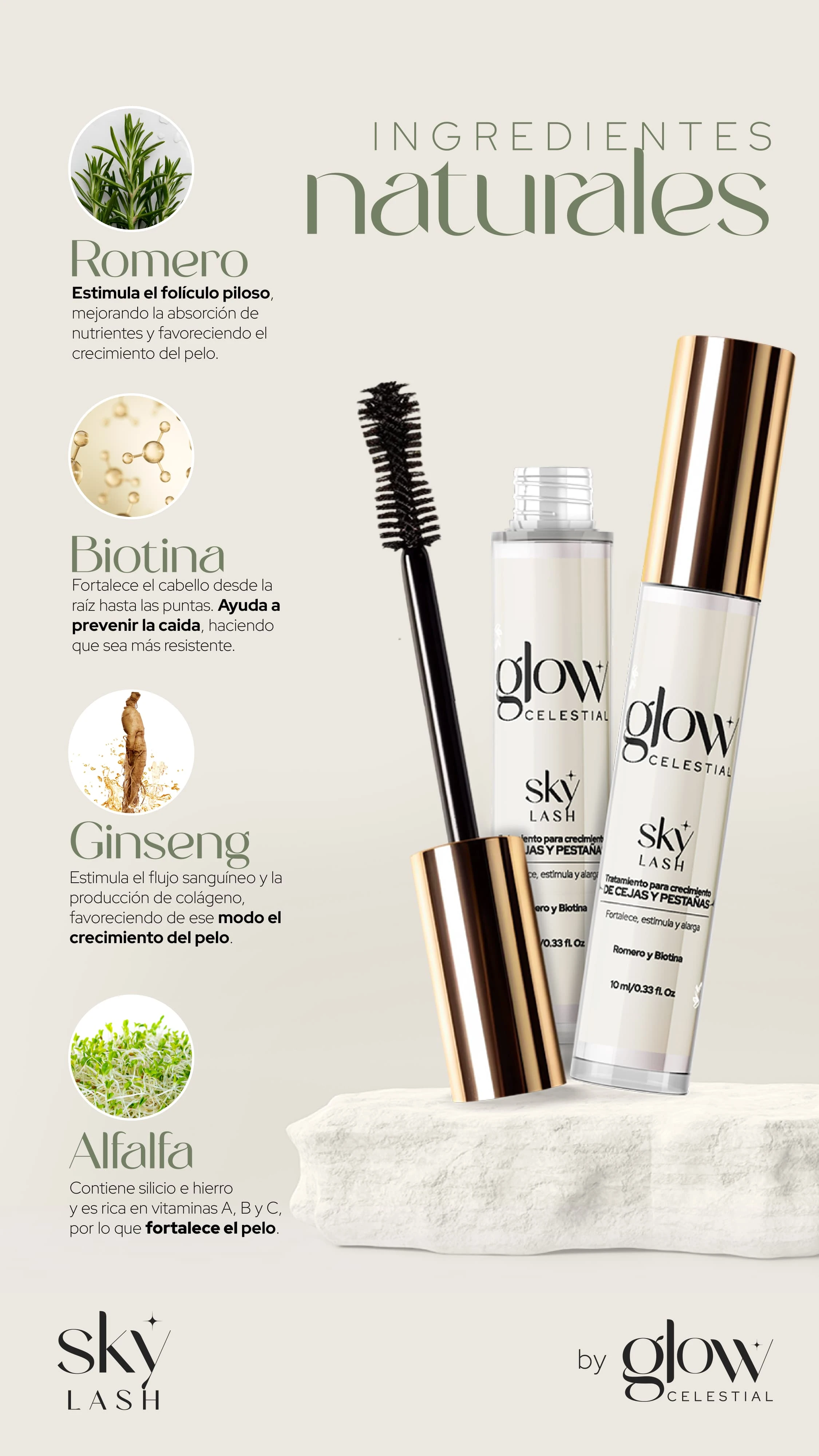 - No, Sky Lash está formulado para estimular el crecimiento tanto de pestañas como de cejas, fortaleciéndolas y alargándolas.