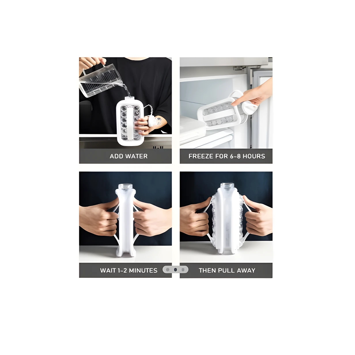 - Tras sacar la tetera del congelador, espere entre 1 y 2 minutos, luego tire de las manijas laterales para liberar las esferas de hielo.