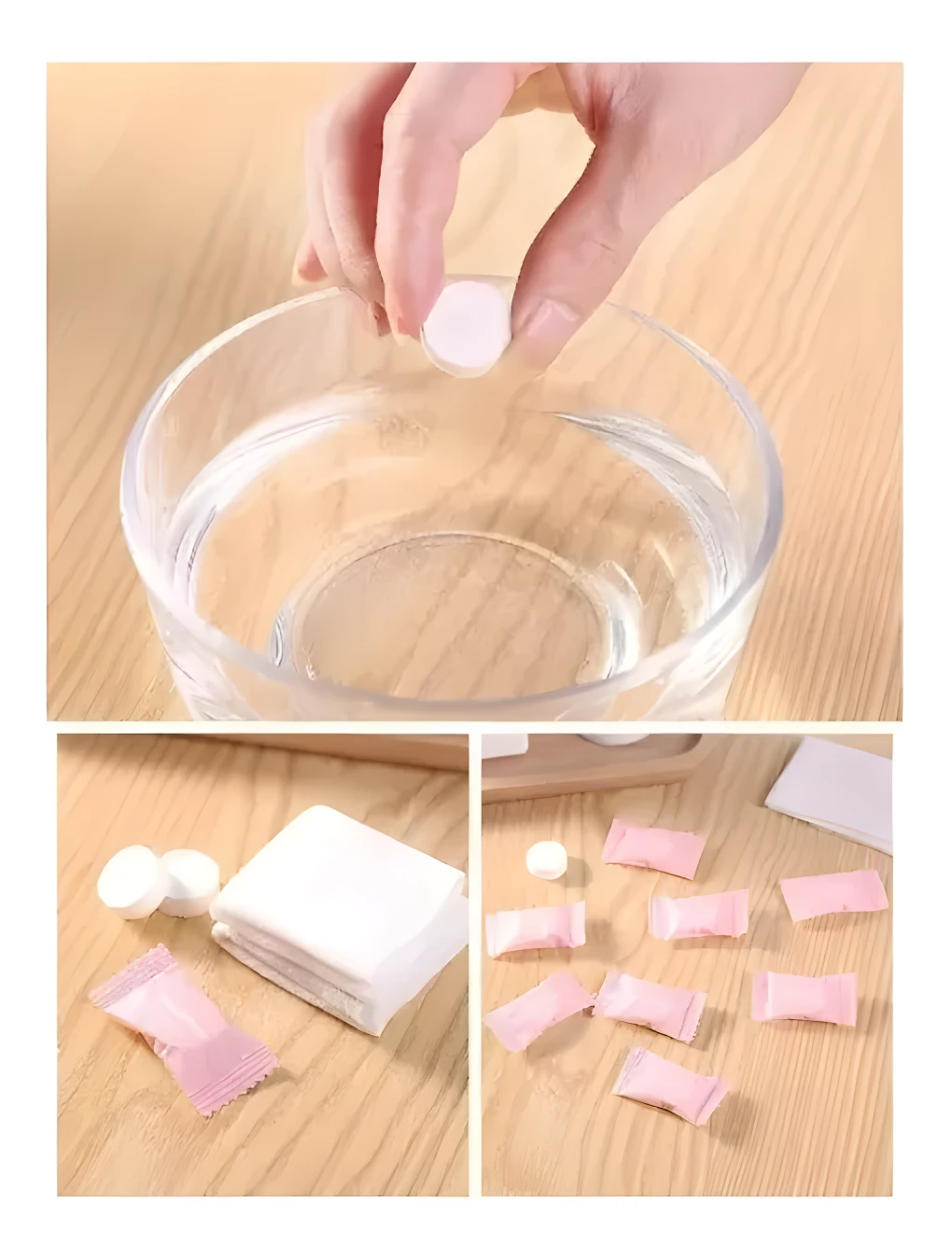 - ✅ Toallitas comprimidas compactas y de fácil transporte.