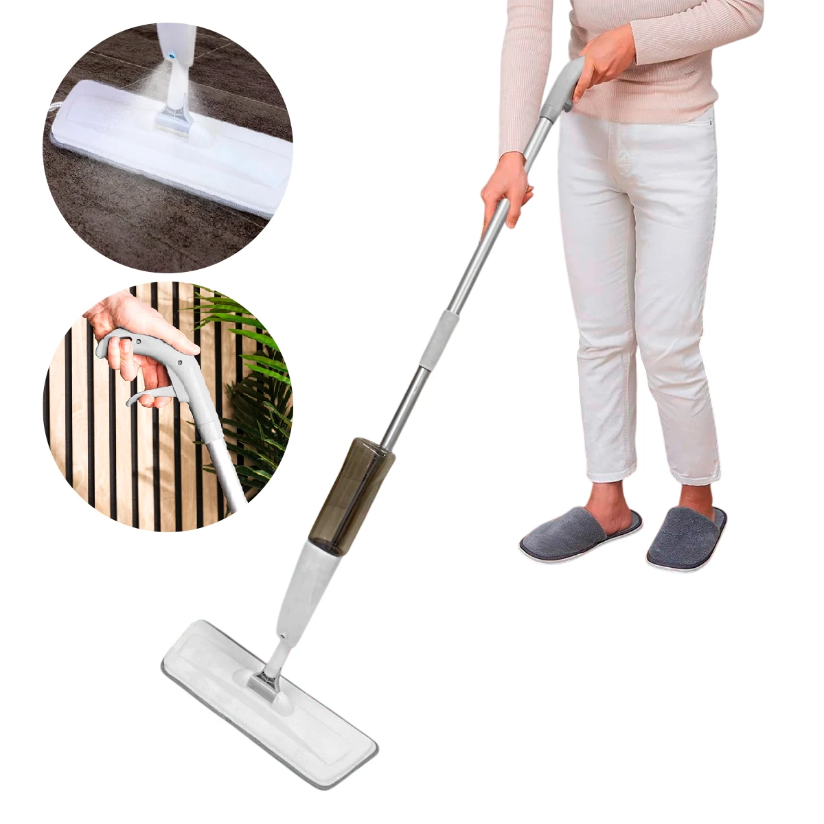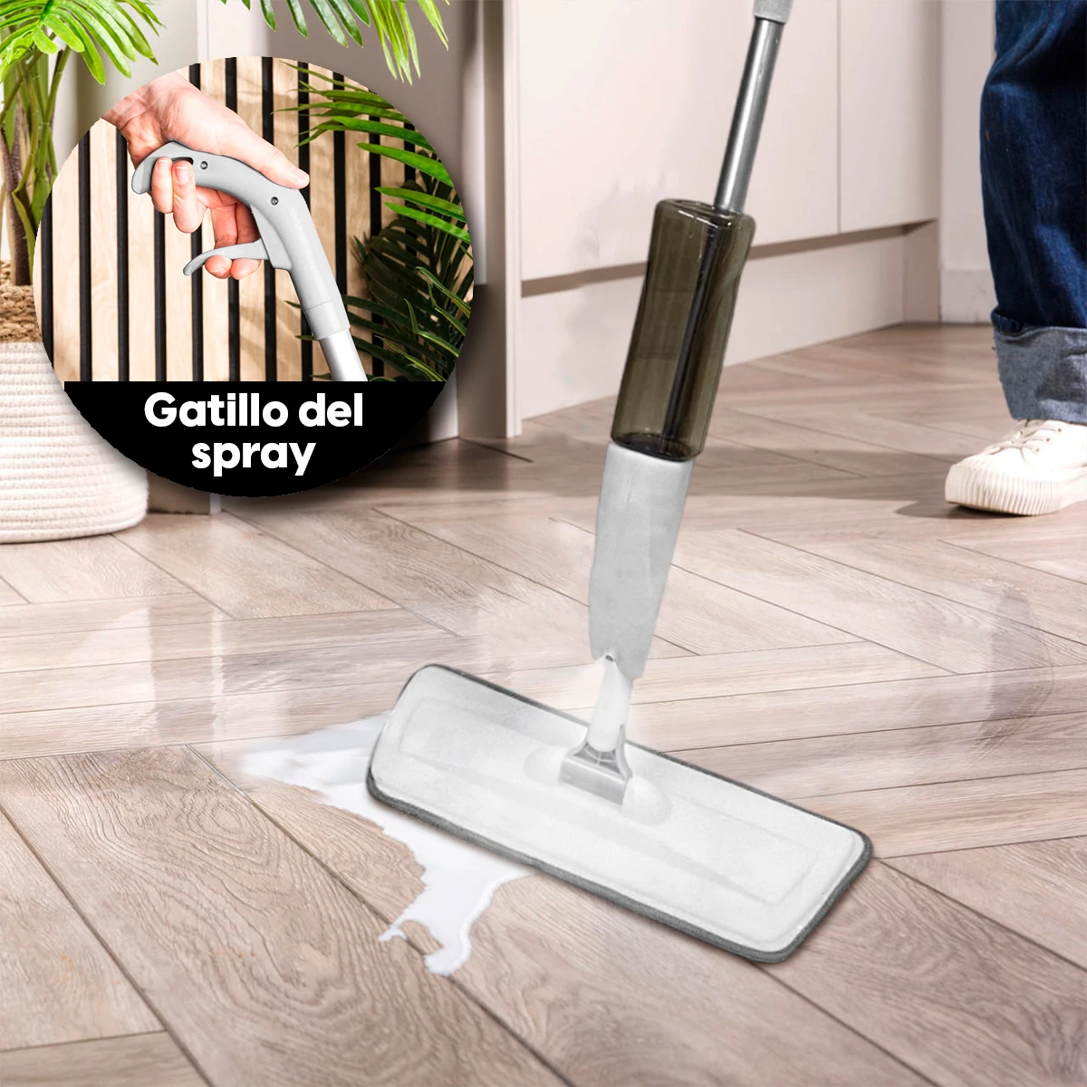 ✨ ¡Limpia esos rincones olvidados! Este trapeador con spray 360° llega hasta el polvo bajo tus muebles, dejando tus pisos relucientes con facilidad. 🧹