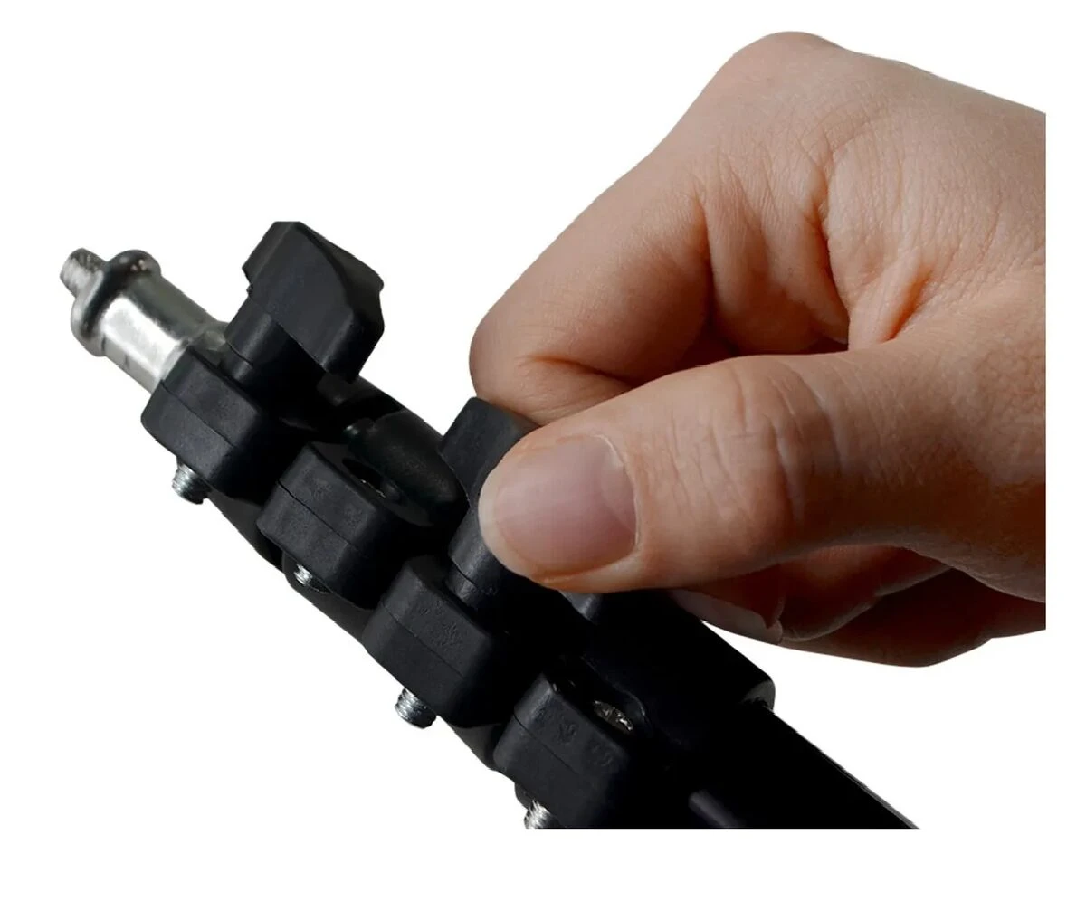- Se ajusta al ser dividido en varias secciones que se extienden, permitiendo alcanzar desde 96 cm hasta 2 metros.