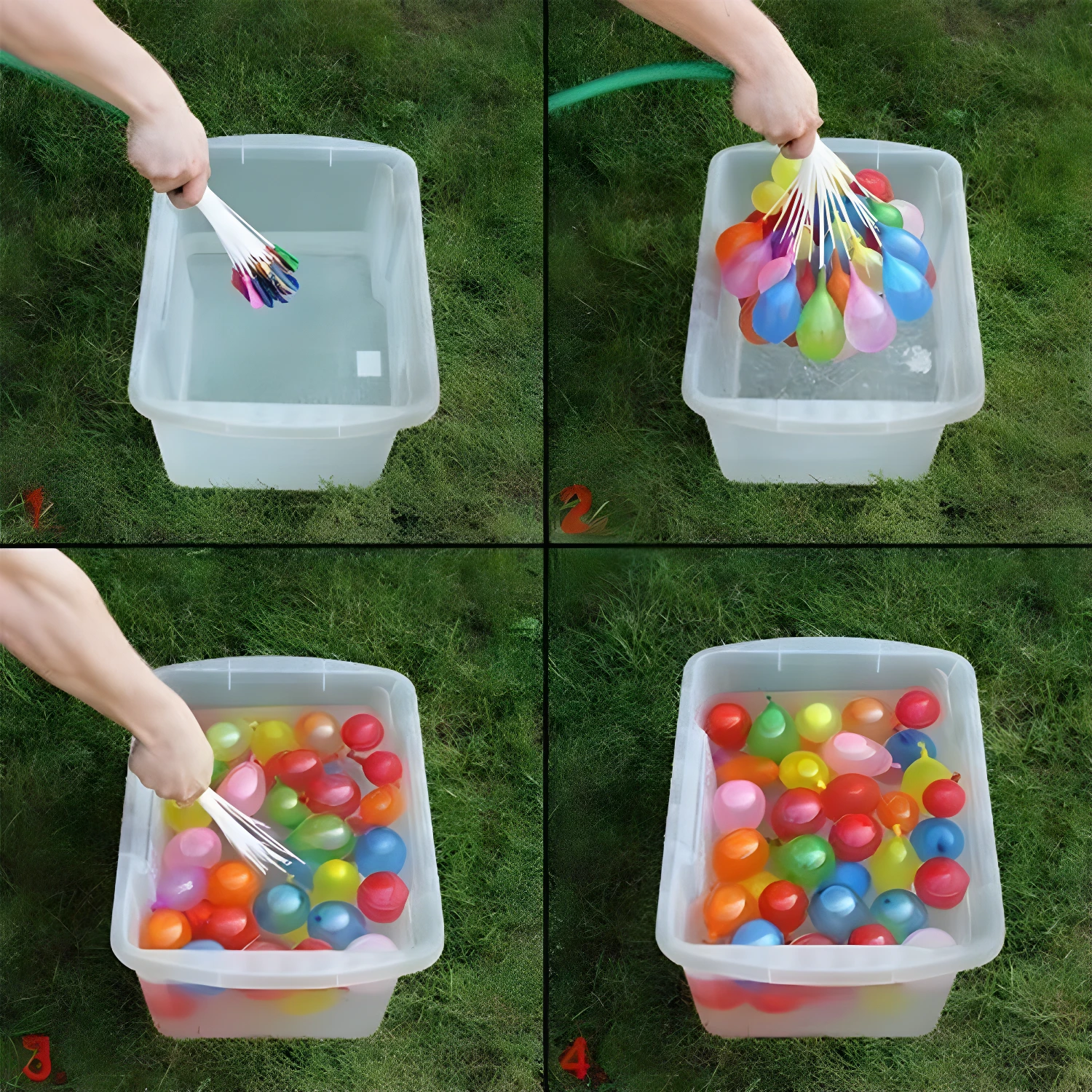 - 🛠️ Modo de uso: Conecta el accesorio Magic Balloons a una manguera y sostén los globos sobre un balde. Al encender el agua, los globos se llenarán en segundos. Una vez llenos, cierra la llave y agita suavemente para soltarlos. ¡Listos para la diversión!