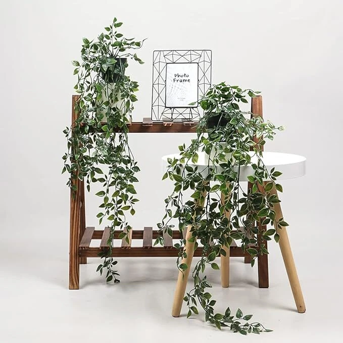 - ✅ Fácil de Colgar y Ajustar: La planta viene lista para instalar con un gancho resistente, permitiendo una colocación rápida y sencilla, y la posibilidad de ajustar su altura.